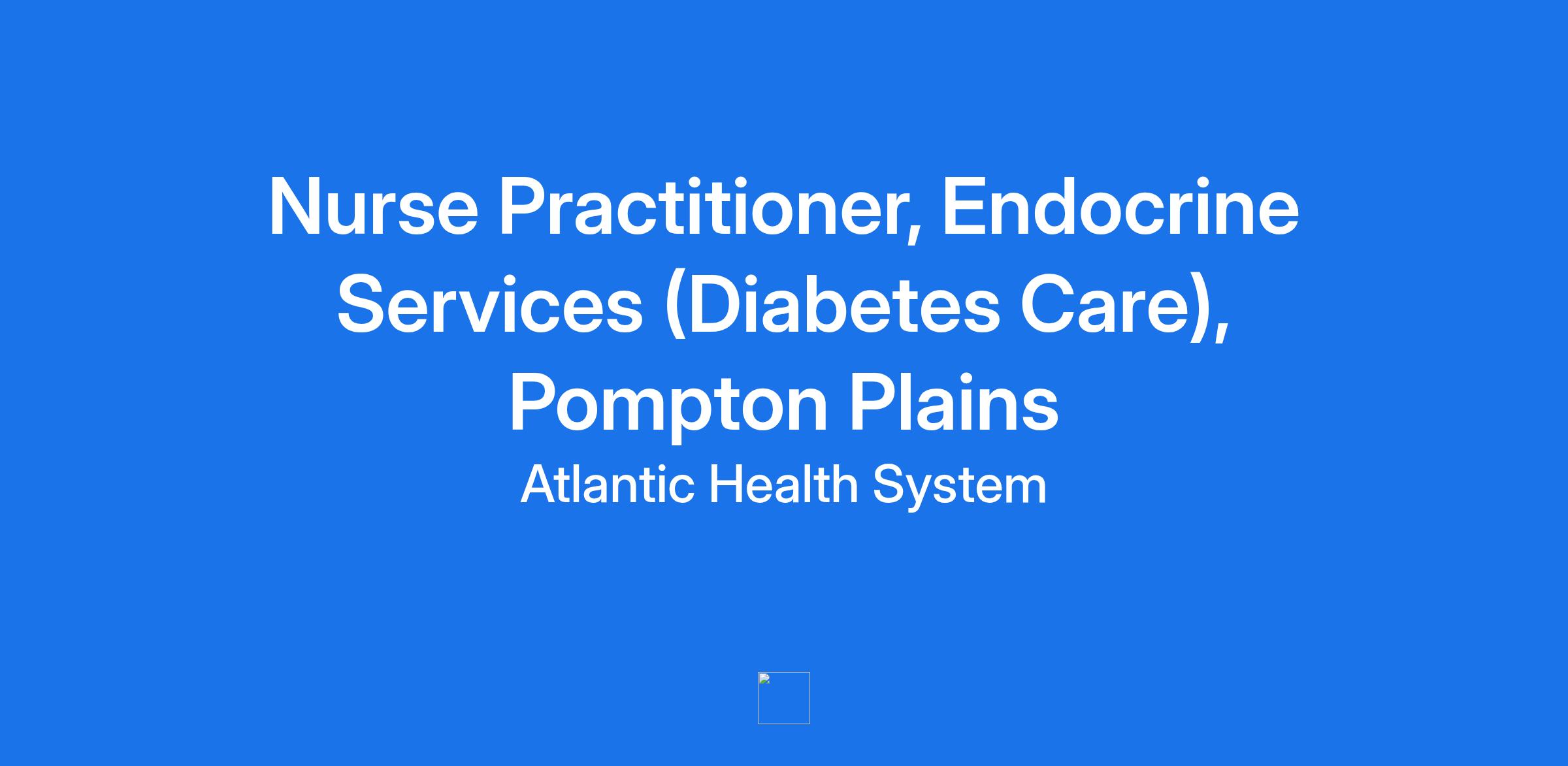 Nurse Practitioner, Endocrine Services (Diabetes Care), Pompton Plains
