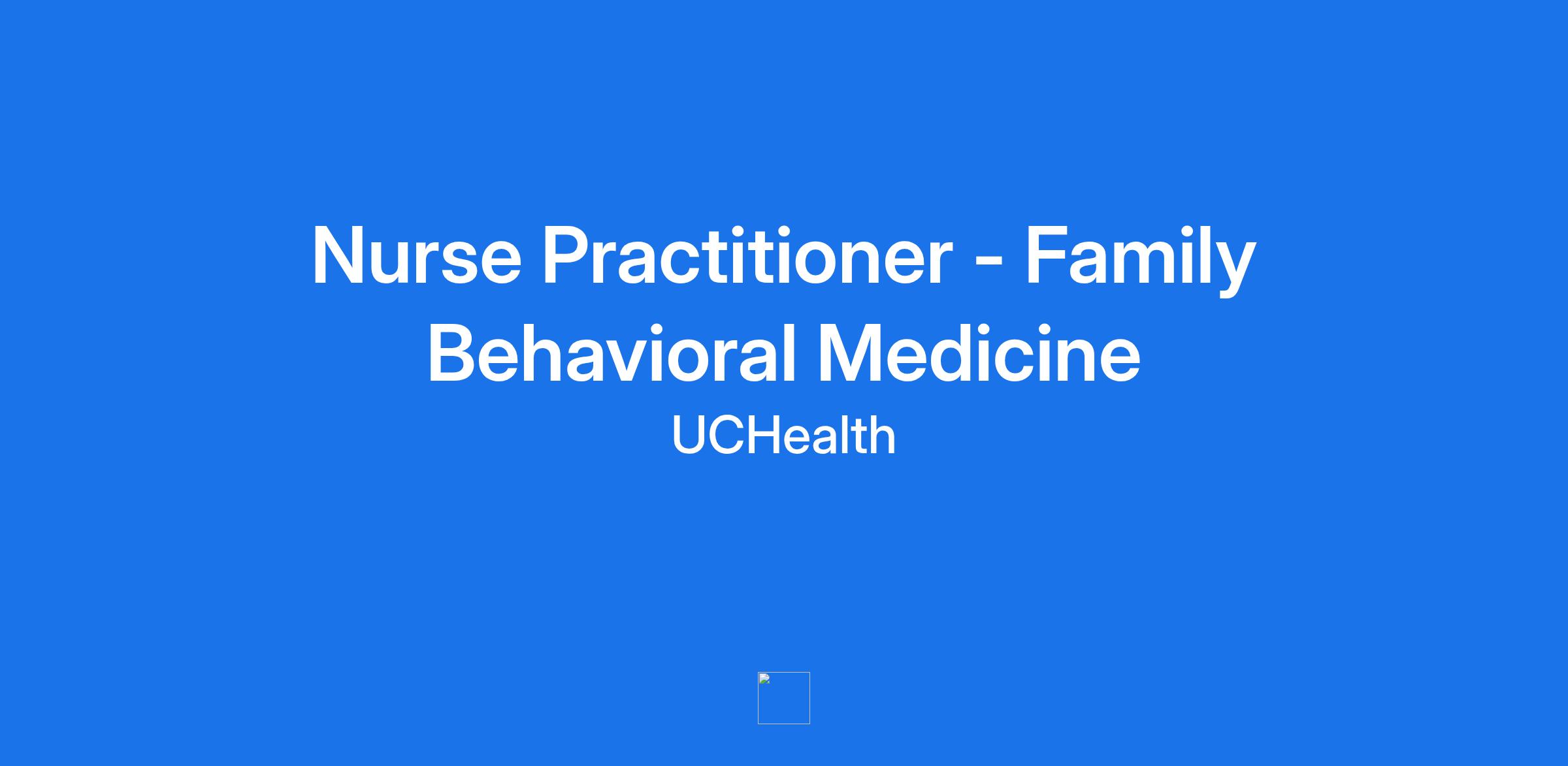 Nurse Practitioner - Family Behavioral Medicine
