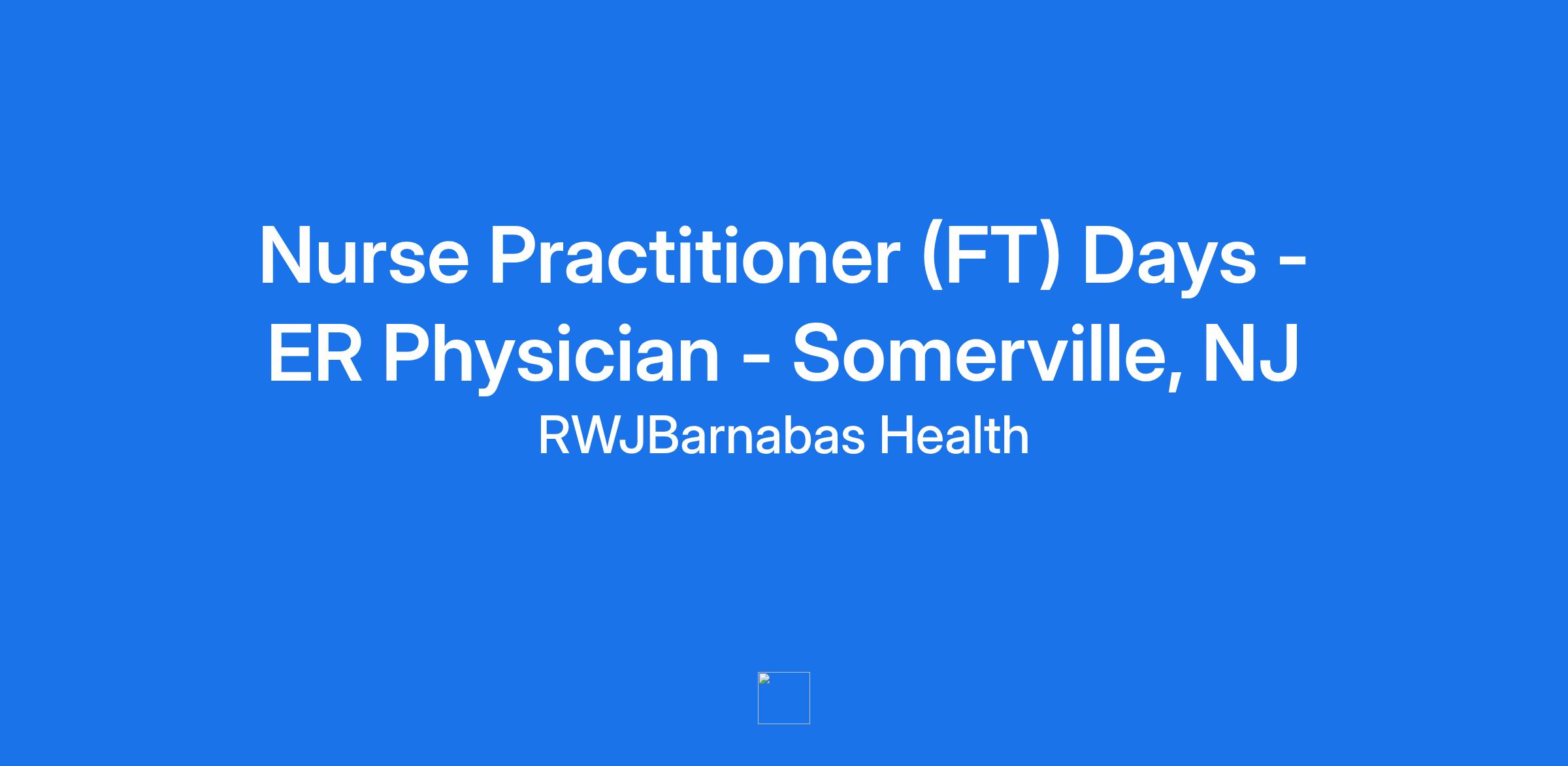 Nurse Practitioner (FT) Days - ER Physician - Somerville, NJReq #:0000208606