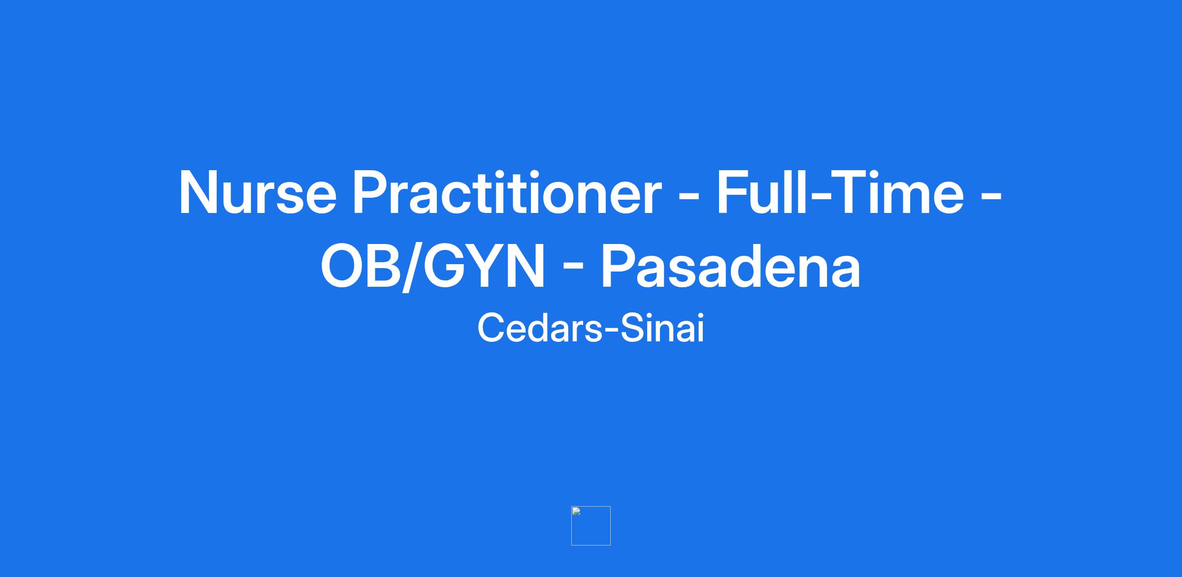 **Working Title** : Nurse Practitioner - Full-Time - OB/GYN - Pasadena