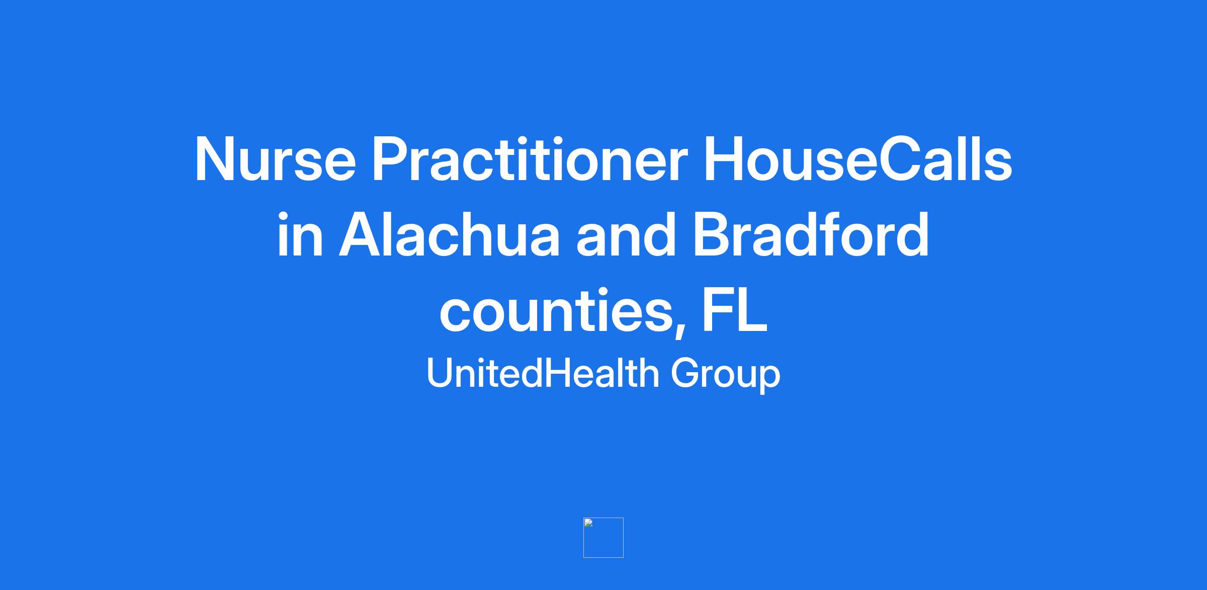 **Optum is seeking a Nurse Practitioner to join our HouseCalls team in Alachua and Bradford counties, FL. Optum is a clinician-led care organization, that is creating a seamless health journey for patients across the care continuum.**