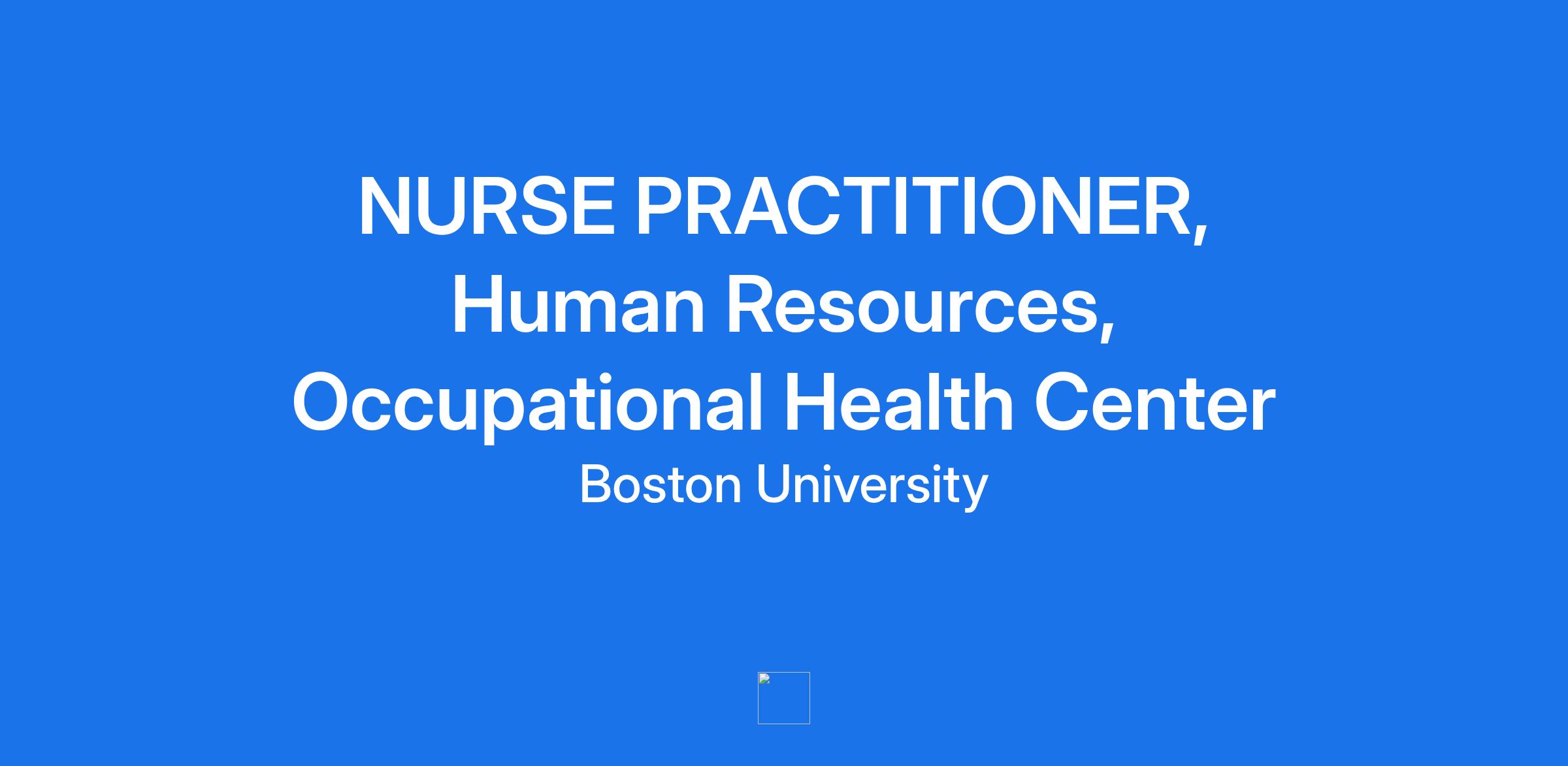 **NURSE PRACTITIONER, Human Resources, Occupational Health Center**