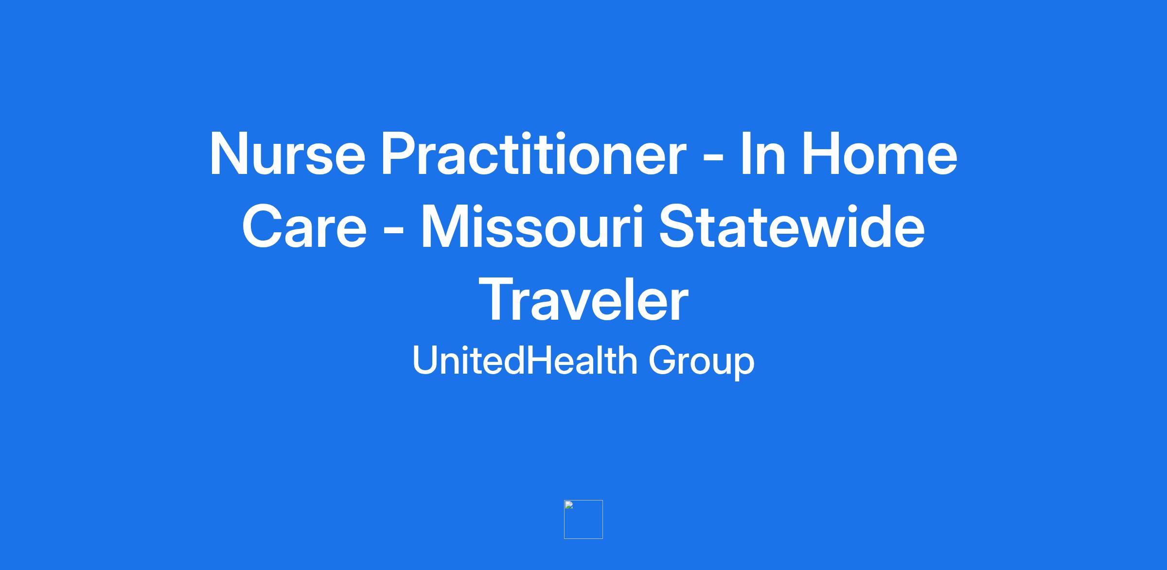 **Home Base Medical Care, part of the Optum family of businesses, is seeking a Statewide Traveler Nurse Practitioner to join our team in Missouri. Optum is a clinician-led care organization that is changing the way clinicians work and live.  Home Based Medical Care involves travel to patient residences. As a member of the Optum Care Delivery team, you'll be an integral part of our vision to make healthcare better for everyone. **
