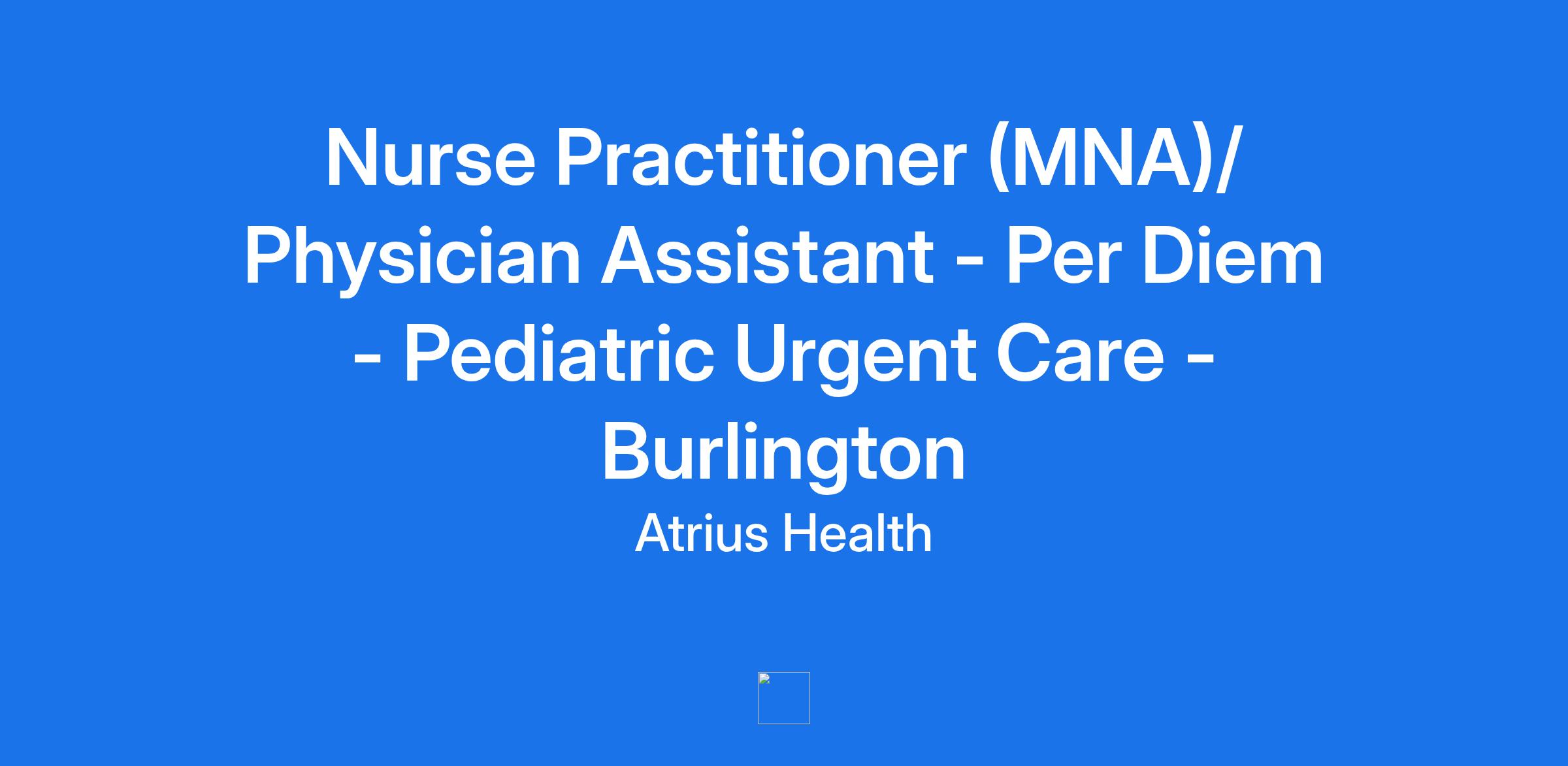 **Title:** *Nurse Practitioner (MNA)/ Physician Assistant - Per Diem - Pediatric Urgent Care - Burlington*