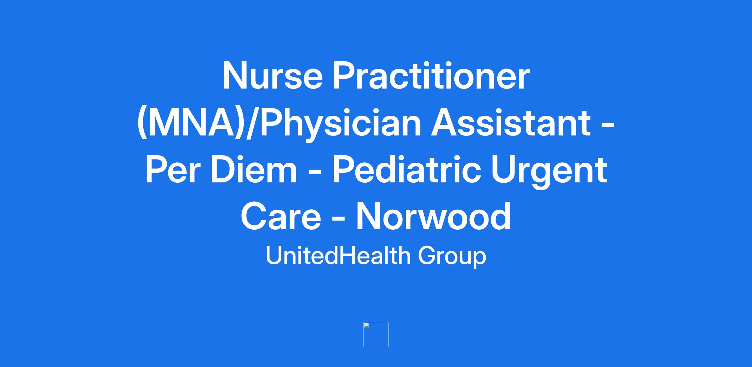 Nurse Practitioner (MNA)/Physician Assistant - Per Diem - Pediatric Urgent Care - Norwood