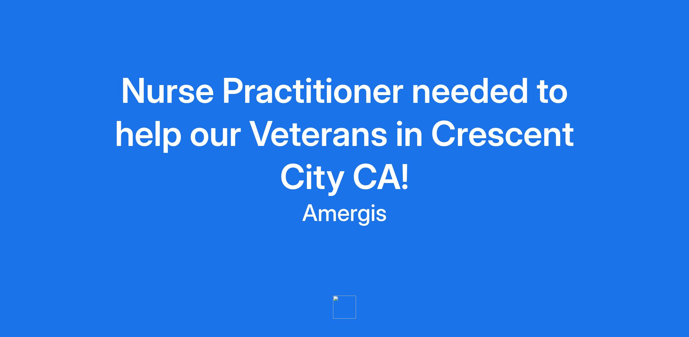 Nurse Practitioner needed to help our Veterans in Crescent City CA!