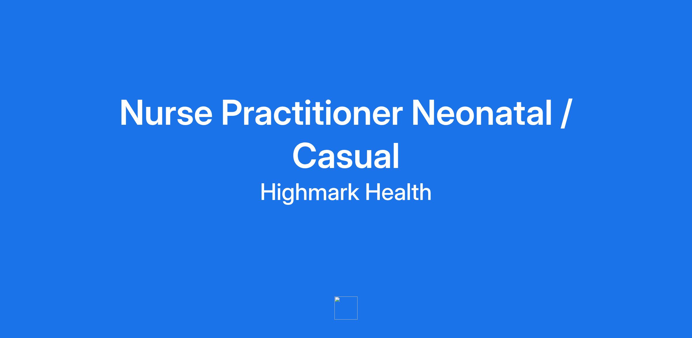 Nurse Practitioner Neonatal / Casual