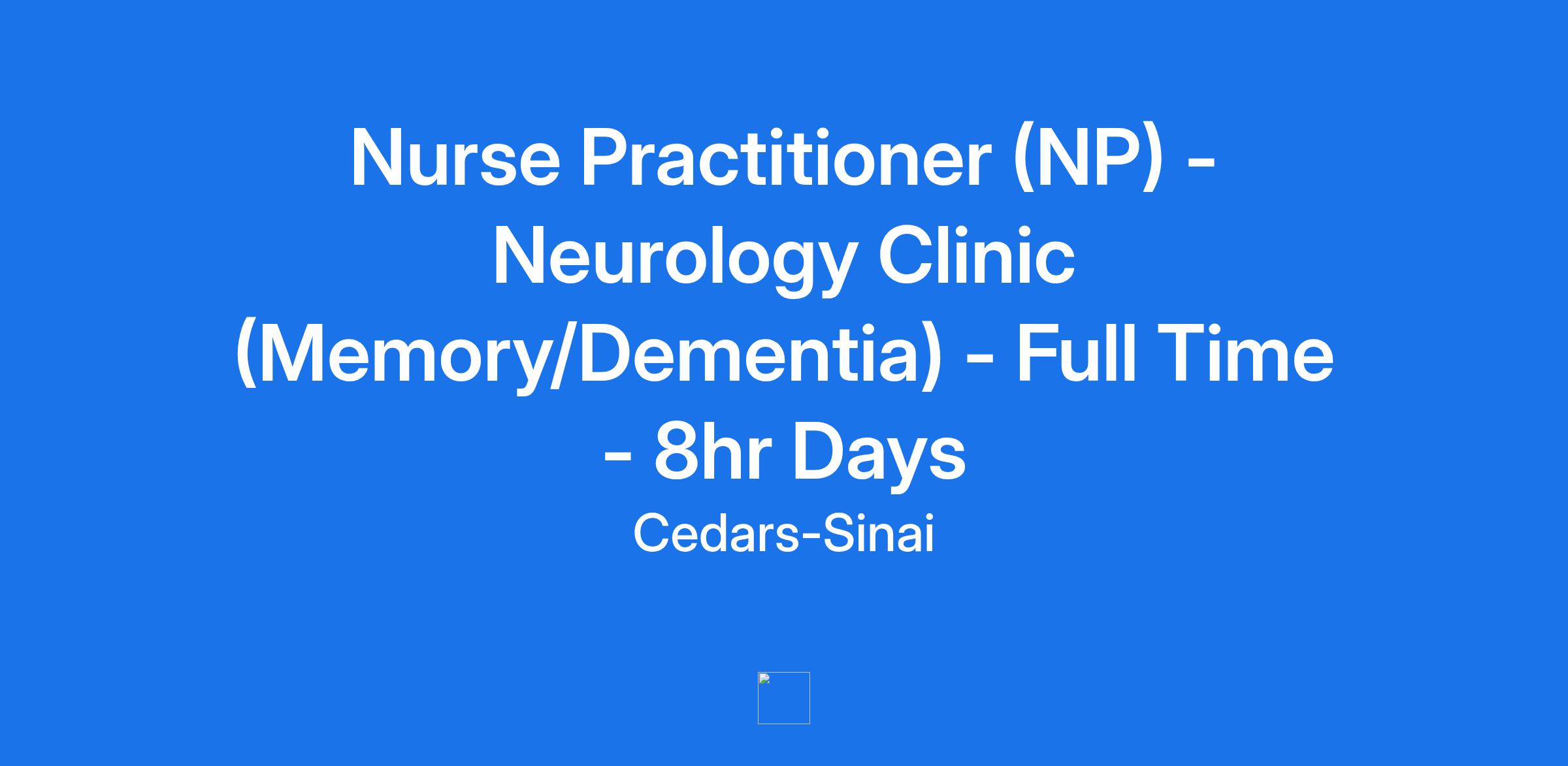 **Working Title** : Nurse Practitioner (NP) - Neurology Clinic (Memory/Dementia) - Full Time - 8hr Days