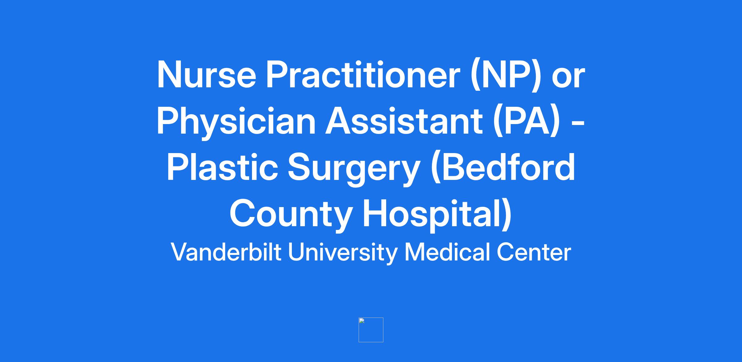 Nurse Practitioner (NP) or Physician Assistant (PA) - Plastic Surgery (Bedford County Hospital)