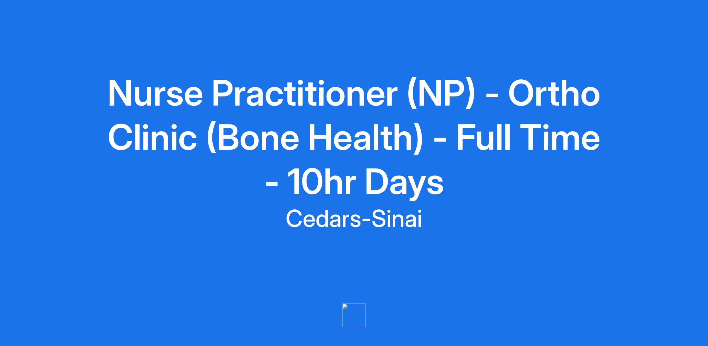 Nurse Practitioner (NP) - Ortho Clinic (Bone Health) - Full Time - 10hr Days
