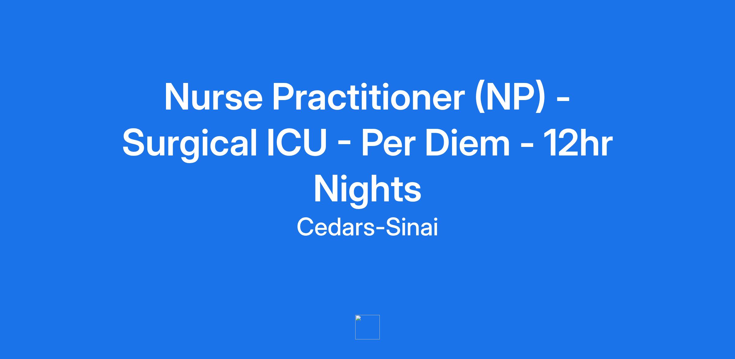 **Working Title** : Nurse Practitioner (NP) - Surgical ICU - Per Diem - 12hr Nights