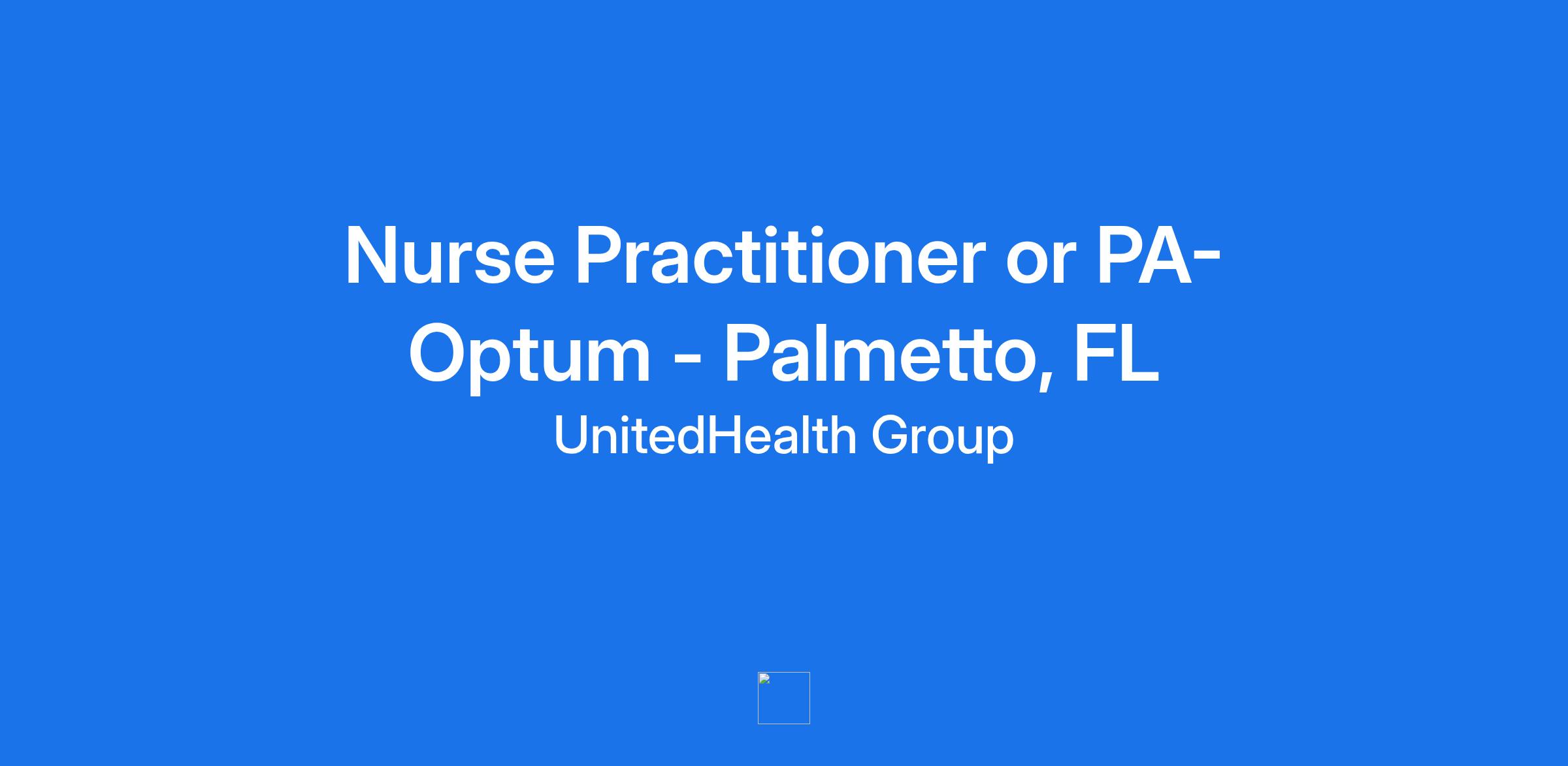 **Optum FL is seeking a Nurse Practitioner or Physician Assistant to join our team in Palmetto, FL. Optum is a clinician-led care organization that is changing the way clinicians work and live.**