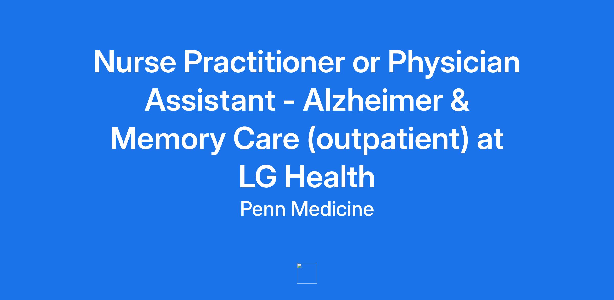 Nurse Practitioner or Physician Assistant - Alzheimer & Memory Care (outpatient) at LG Health