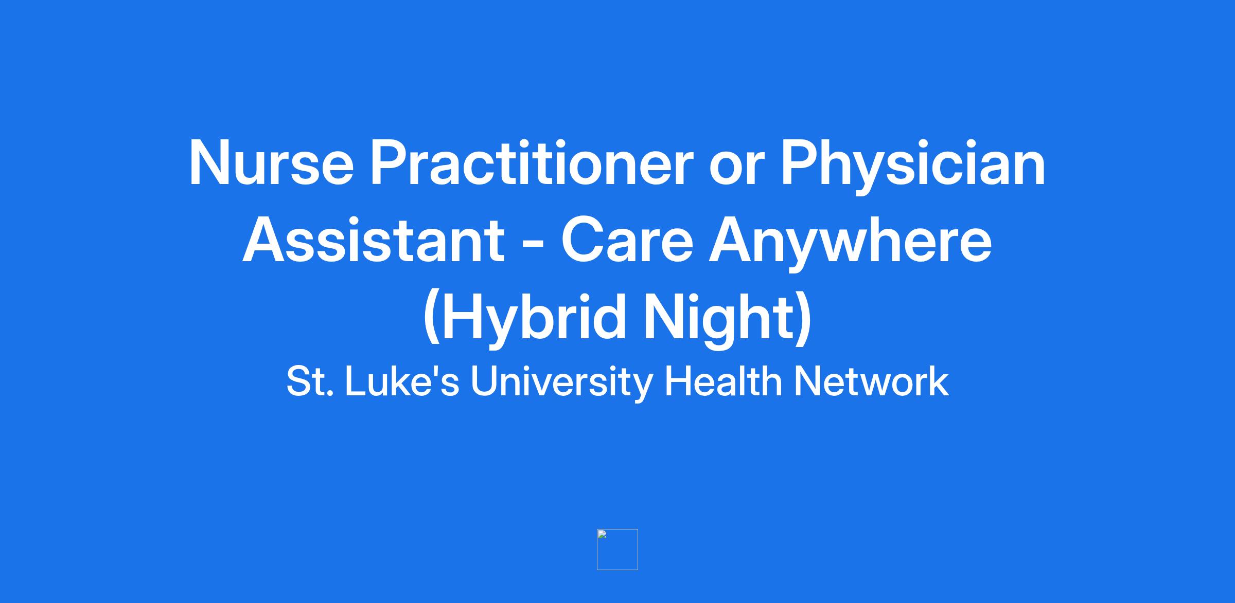 The Care Anywhere Night Hybrid Advanced Practitioner (Physician Assistant or Nurse Practitioner) is a clinician who thrives in a changing environment where care delivery is enhanced through technology. This is a unique and innovative role, responsible for providing excellent patient care and experience in both the in person and virtual space. Customer Service and Compassionate and Empathetic communication skills will be critical in this roll. Must be able to treat children & adults.