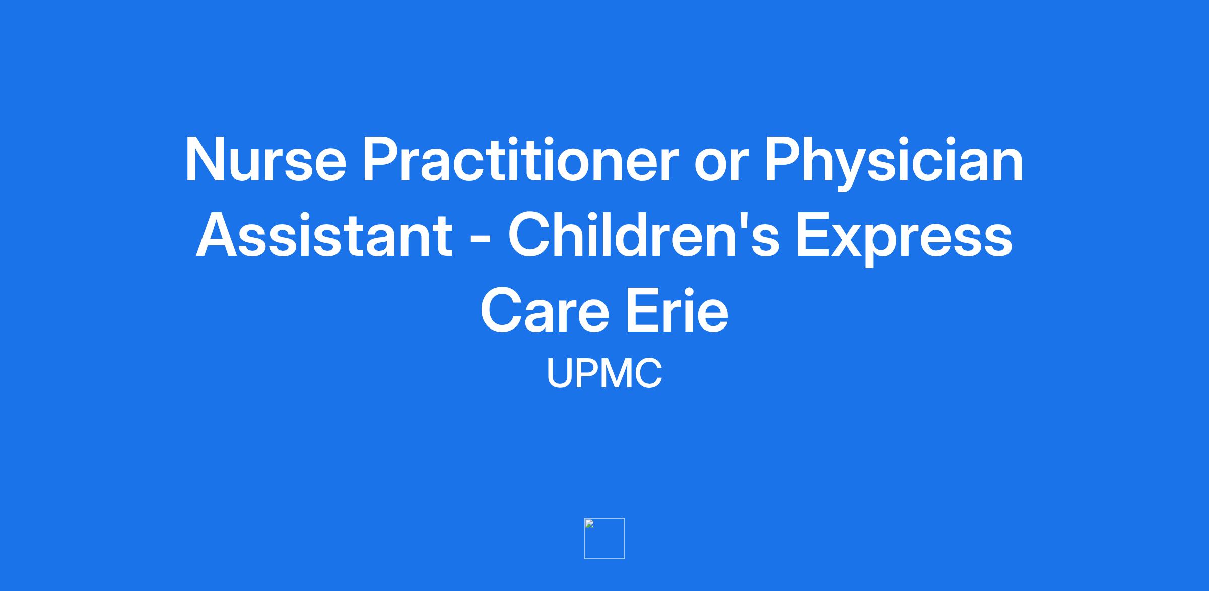 Nurse Practitioner or Physician Assistant - Children's Express Care Erie