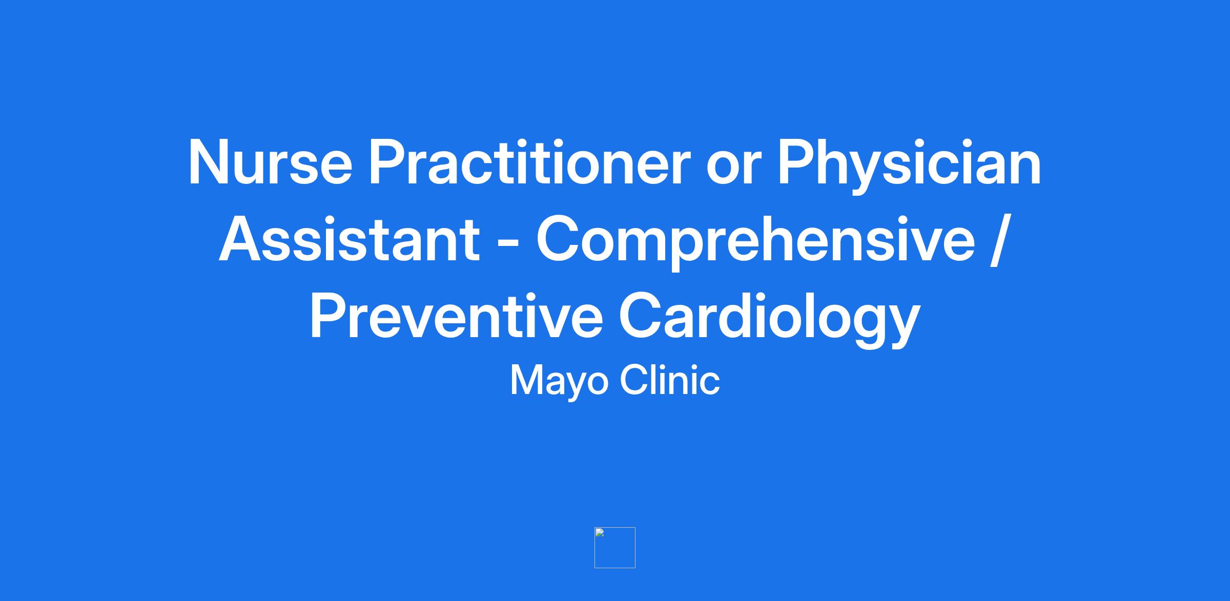 Nurse Practitioner or Physician Assistant - Comprehensive / Preventive Cardiology