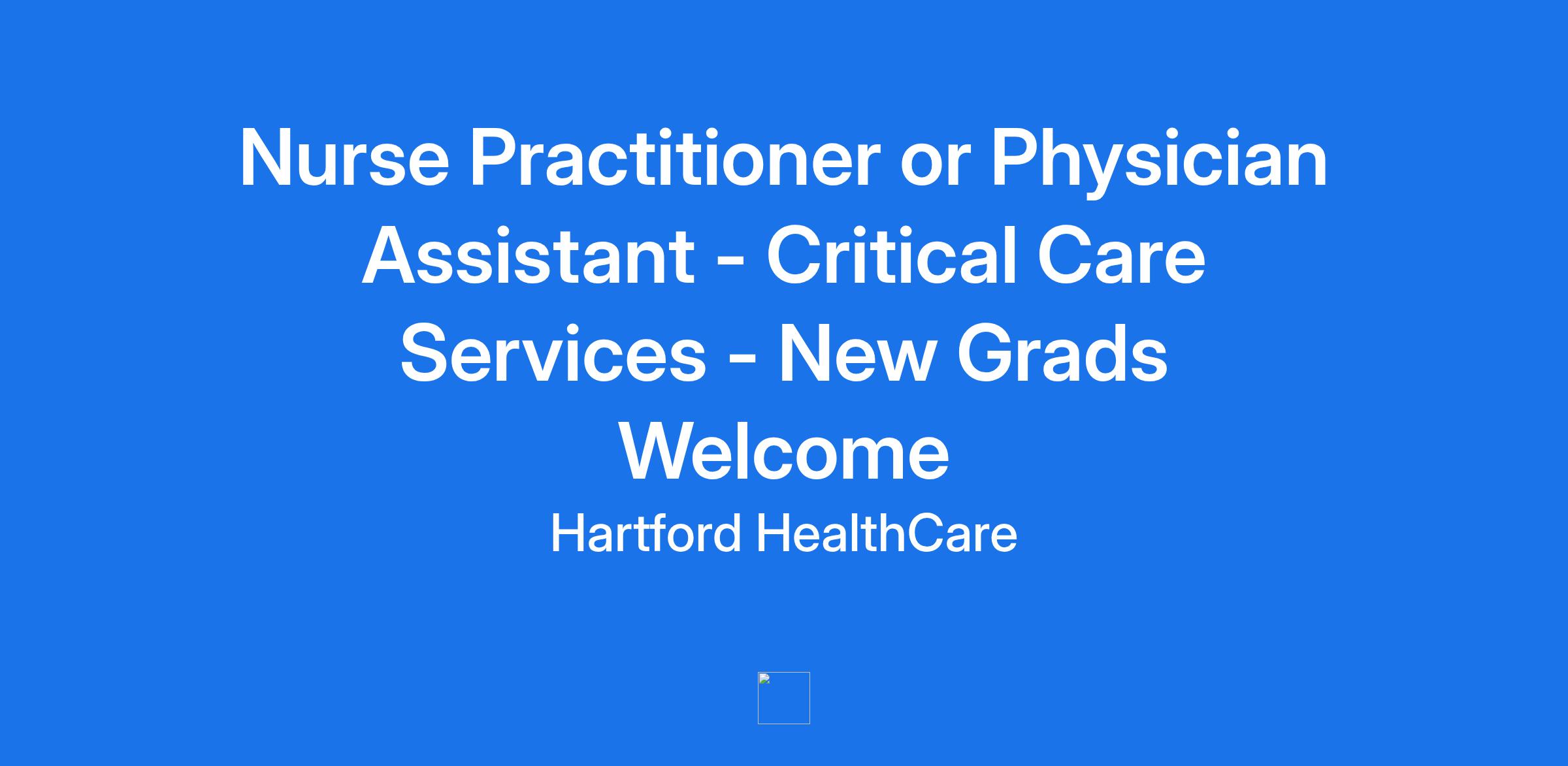 *Advanced Practitioner Benefits:* * Market-leading compensation and benefits and generous paid time off * Paid CME time off plus CME budget, reimbursed professional licenses and dues * Enhanced Tuition Assistance and Higher Education Partnerships * Voluntary benefits include student loan programs, home, auto, renter’s insurance, identity theft protection, legal services, low-interest loans, pet insurance and more! * Employee discount programs and colleague assistance offering resources and information for personal and work-life issues * Family care benefits through Care.com including emergency back-up care benefit for children, adults and even pets! *Position Details:* The Central Region of Hartford Healthcare is hiring a Physician Assistant or Nurse Practitioner to join their critical care team! This full-time position offers a unique opportunity to work across both campuses at both MidState Medical Center and The Hospital of Central Connecticut critical care services. As an APP, you will play a crucial role in providing comprehensive and specialized care to a diverse, critically ill patient population of complex medical and surgical patients. Duties include admissions, discharges, rounding, and procedures such as central lines, arterial lines, and chest tubes. We provide a robust and comprehensive orientation and supervision for procedures, making this an excellent opportunity for new graduates looking for one-on-one mentorship. * * *Role*: Physician Assistant or Acute Care Nurse Practitioner *Location*: 100 Grand Street, New Britain, CT 06052 *Setting*: Inpatient, critical care *Schedule:* Full-time, day/night rotating schedule. *Call schedule:* No call *Hartford HealthCare supports Nurse Practitioners and Physician Assistants in practice:* · Dedicated support and voice for our Nurse Practitioners and Physician Assistants through the *Office of Advanced Practice* directed by Sarah Clark, MBA, MHS, PA-C, BSN, RN, System Director of Advanced Practice · Hartford HealthCare is one of the largest, *non-profit*, fully-integrated healthcare systems providing patient care in the state, allowing our providers to care for their patients no matter where they reside in Connecticut · With tools like *EPIC*, Hartford HealthCare’s state of the art clinical and informatics technology promotes improved patient outcomes, streamlined continuity of care and superior provider satisfaction *About Hartford HealthCare:* · Honored as a “*Best Organizations for Leadership Development*” by the National Center for Healthcare Leadership (NCHL) · Prestigiously named one of the “*Best Hospitals to Work for in Connecticut*” by the Becker's Hospital Review · Committed to *continuous development* through The Center for Education Stimulation & Innovation (CESI), our Provider Leadership Development Institute and a robust on demand learning platform including CME, special courses, learning series and tools and resources · Established *Mentorship and Orientation* programs specially designed for newly hired providers and providers new to practice *Physician Assistants/Nurse Practitioners Role Scope:* Under established guidelines and in collaboration and/or supervision with the practice physician(s), Physician Assistants/Nurse Practitioners perform routine physical examinations, and formulate medical, educational, and psychosocial plans to treat patients. In consultation with the physician(s) and care team members, Physician Assistants/Nurse Practitioners develop plans for further evaluation of health needs, e.g., referral to other health team members or specialists. Physician Assistants/Nurse Practitioners provide appropriate treatment for problems within the scope of the provider’s practice as designated by protocols and identifies problems outside of their scope of practice and refers appropriately to physician. * *Requirements:* o *Licensure*: Unrestricted State of Connecticut Medical License (or eligible) o *Training*: Physician Assistant or Acute Care Nurse Practitioner o *Experience*: New graduates welcome to apply! + *Preferred Experience*:* *1 years in a critical care setting Interested candidates please contact Victor Rodriguez, Advanced Practice Recruiter, at Victor.Rodriguez2@hhchealth.org. **Job:** **Critical Care* **Organization:** **New Britain General* **Title:** *Nurse Practitioner or Physician Assistant - Critical Care Services - New Grads Welcome* **Location:** *Connecticut-New Britain-100 Grand Street New Britain (10126)* **Requisition ID:** *23156068* **Other Locations:** *United States*