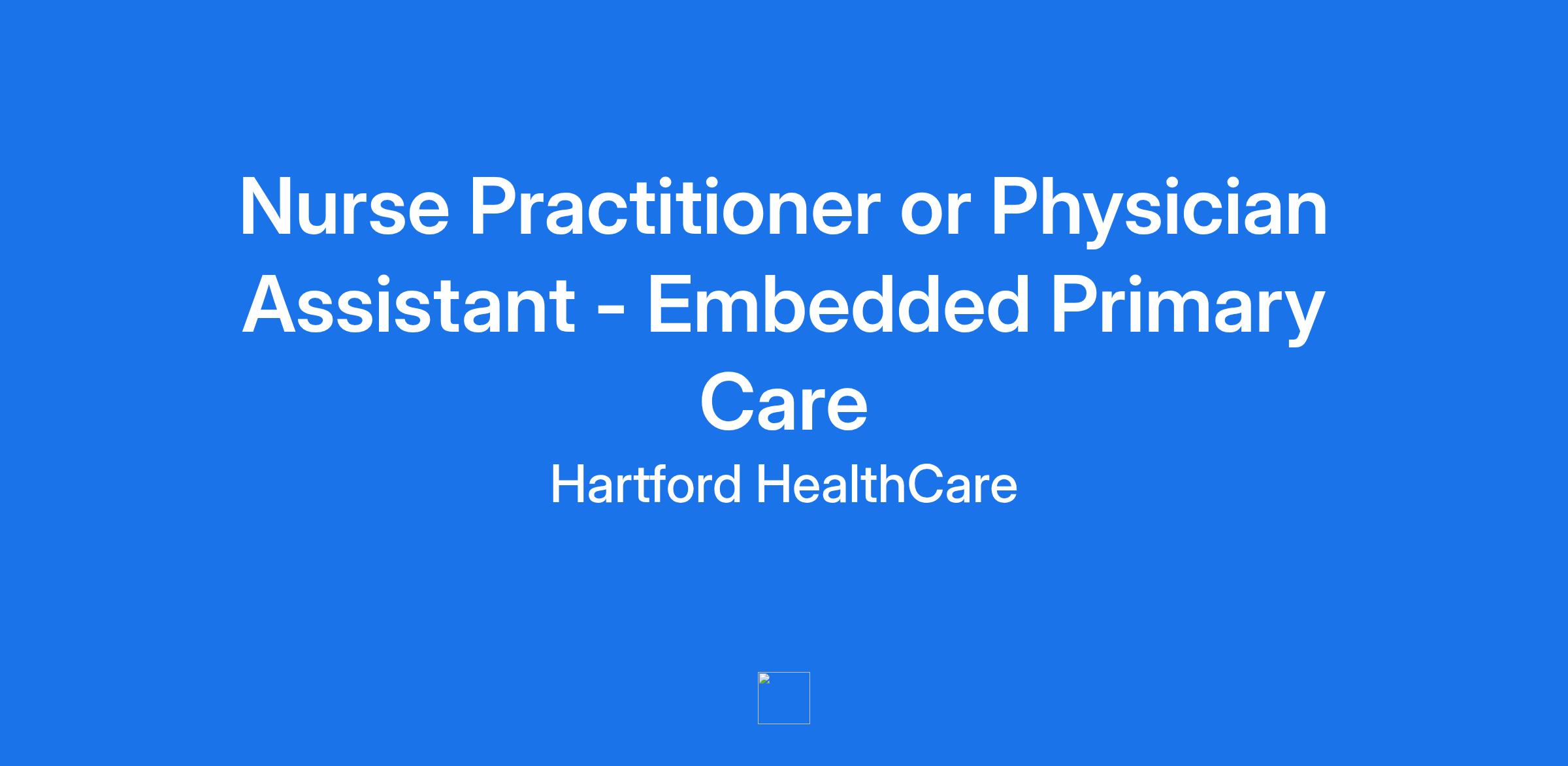 **Nurse Practitioner and Physician Assistant Benefits:** · Market-leading compensation and benefits and generous paid time off · Paid CME time off plus CME budget, reimbursed professional licenses and dues · Enhanced Tuition Assistance and Higher Education Partnerships · Voluntary benefits include student loan programs, home, auto, renters’ insurance, identity theft protection, legal services, low-interest loans, pet insurance and more! · Employee discount programs and colleague assistance offering resources and information for personal and work-life issues · Family care benefits through Care.com including emergency back-up care benefit for children, adults and even pets! **Position Details:** Join our team as an Embedded Nurse Practitioner or Physician Assistant! In this impactful role, you'll conduct annual wellness exams and vital screenings that enhance the quality of patient care. You'll perform thorough health assessments, conduct non-invasive screenings, and offer personalized recommendations for disease management. Your contributions to patient education and health promotion will make a real difference in our community! **Role**: Open to Nurse Practitioners and Physician Assistants **Location**: Rotation between Mystic, Waterford, Plainfield, Norwich, and New London. **Setting**: 100% Outpatient Primary Care **Schedule**: Full-time, weekdays only. **Call schedule**: No call required **Hartford HealthCare supports Nurse Practitioners and Physician Assistants in practice:** · Dedicated support and voice for our for Nurse Practitioners and Physician Assistants through the Office of Advanced Practice directed by Sarah Clark, MBA, MHS, PA-C, BSN, RN, System Director of Advanced Practice · Hartford HealthCare is one of the largest, non-profit, fully-integrated healthcare systems providing patient care in the state, allowing our providers to care for their patients no matter where they reside in Connecticut · With tools like EPIC, Hartford HealthCare’s state of the art clinical and informatics technology promotes improved patient outcomes, streamlined continuity of care and superior provider satisfaction **About Hartford HealthCare:** · Honored as a “Best Organizations for Leadership Development” by the National Center for Healthcare Leadership (NCHL) · Prestigiously named one of the “Best Hospitals to Work for in Connecticut” by the Becker's Hospital Review · Committed to continuous development through The Center for Education Stimulation & Innovation (CESI), our Provider Leadership Development Institute and a robust on demand learning platform including CME, special courses, learning series and tools and resources · Established Mentorship and Orientation programs specially designed for newly hired providers and providers new to practice **Nurse Practitioners and Physician Assistants Role Scope:** Under established guidelines and in collaboration and/or supervision with the practice physician(s), Nurse Practitioners and Physician Assistants perform routine physical examinations, and formulate medical, educational, and psychosocial plans to treat patients. In consultation with the physician(s) and care team members, Nurse Practitioners and Physician Assistants develop plans for further evaluation of health needs, e.g., referral to other health team members or specialists. Nurse Practitioners or Physician Assistants provide appropriate treatment for problems within the scope of the provider’s practice as designated by protocols and identifies problems outside of their scope of practice and refers appropriately to physician. *Requirements:* · *Licensure*: Unrestricted State of Connecticut Medical License (or eligible) · *Training*: Nurse Practitioner (Family, Adult/Geri Nurse Practitioner) or Physician Assistant · *Experience*: 2 years’ experience in a primary care or relevant outpatient setting Interested candidates please contact Jennifer Straka, Advanced Practice Recruiter, at Jennifer.Straka@hhchealth.org or (860) 996-4441. **Job:** **Primary Care* **Organization:** **Hartford HealthCare Medical Group* **Title:** *Nurse Practitioner or Physician Assistant - Embedded Primary Care* **Location:** *Connecticut-Wethersfield-1290 Silas Deane Hwy Wethrsfld (10181)* **Requisition ID:** *25165519*