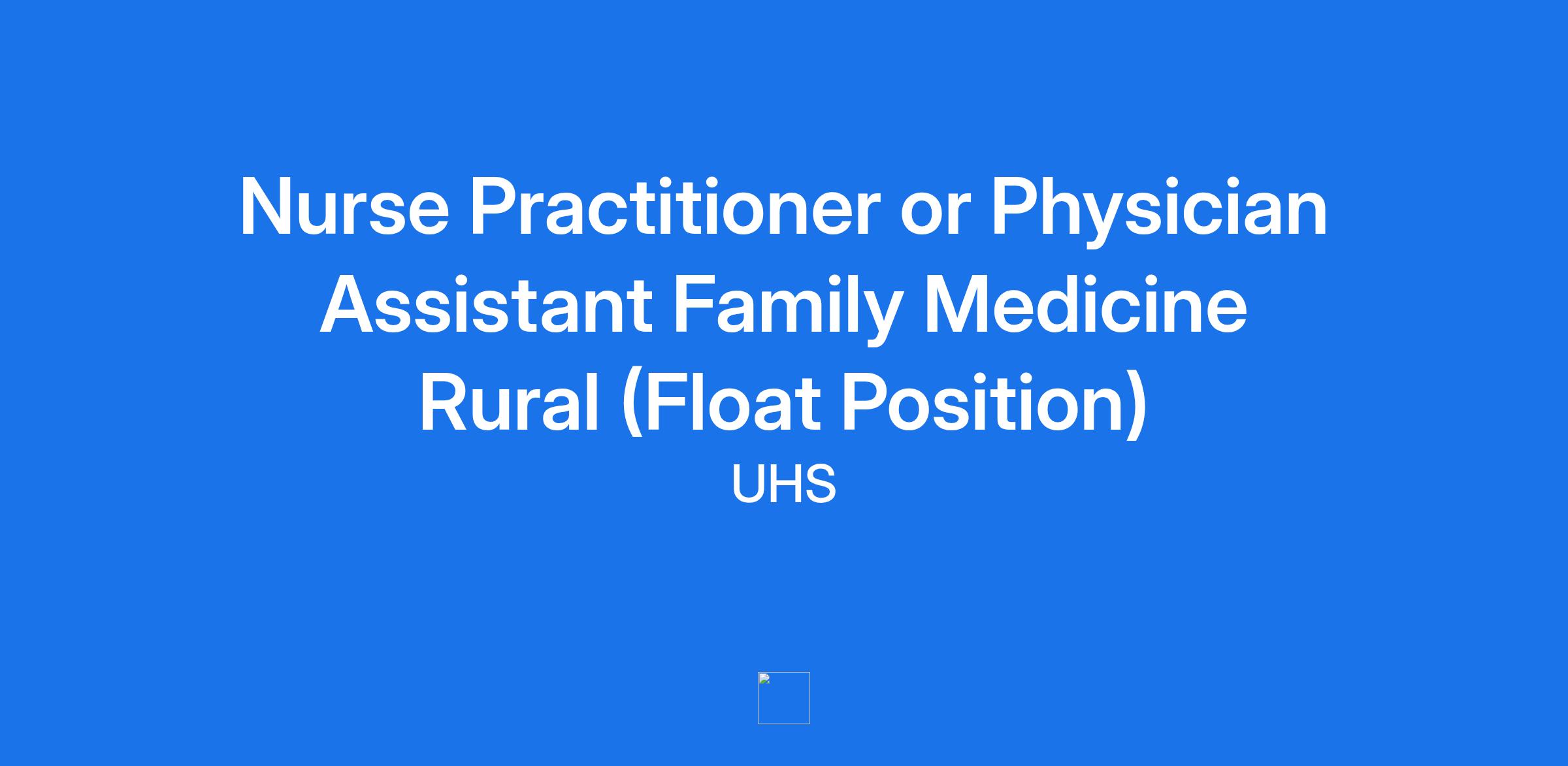 Nurse Practitioner or Physician Assistant Family Medicine Rural (Float Position)