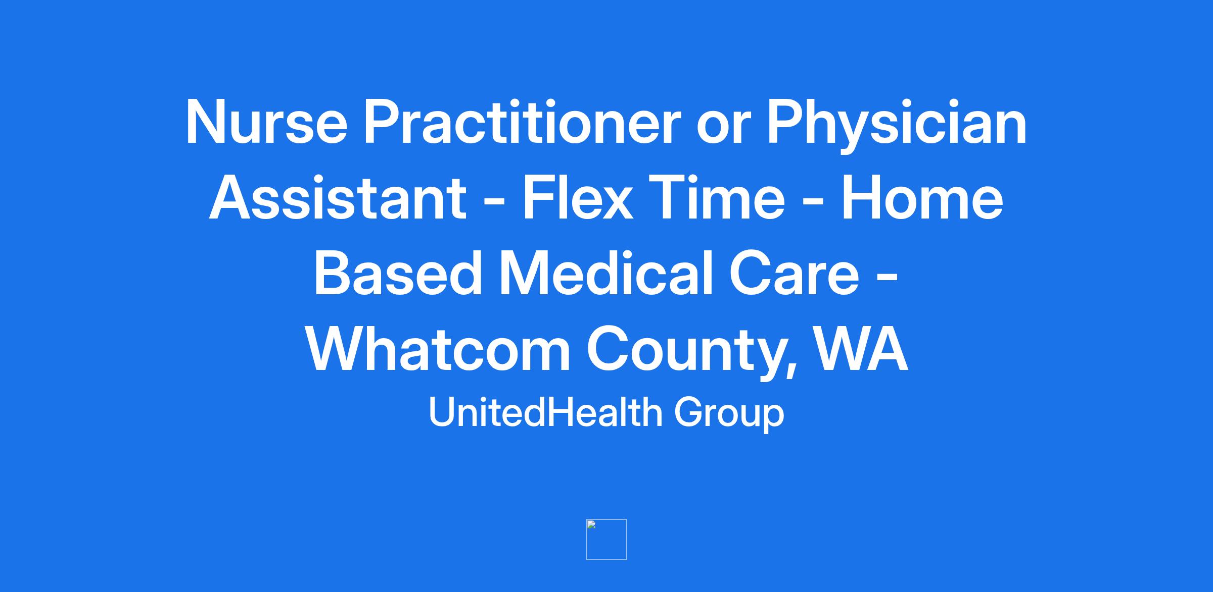 **Home Base Medical Care, part of the Optum family of businesses, is seeking a Flexible NP or PA to join our team to see patients for 10 hours per week in Whatcom County, WA. Optum is a clinician-led care organization that is changing the way clinicians work and live. **