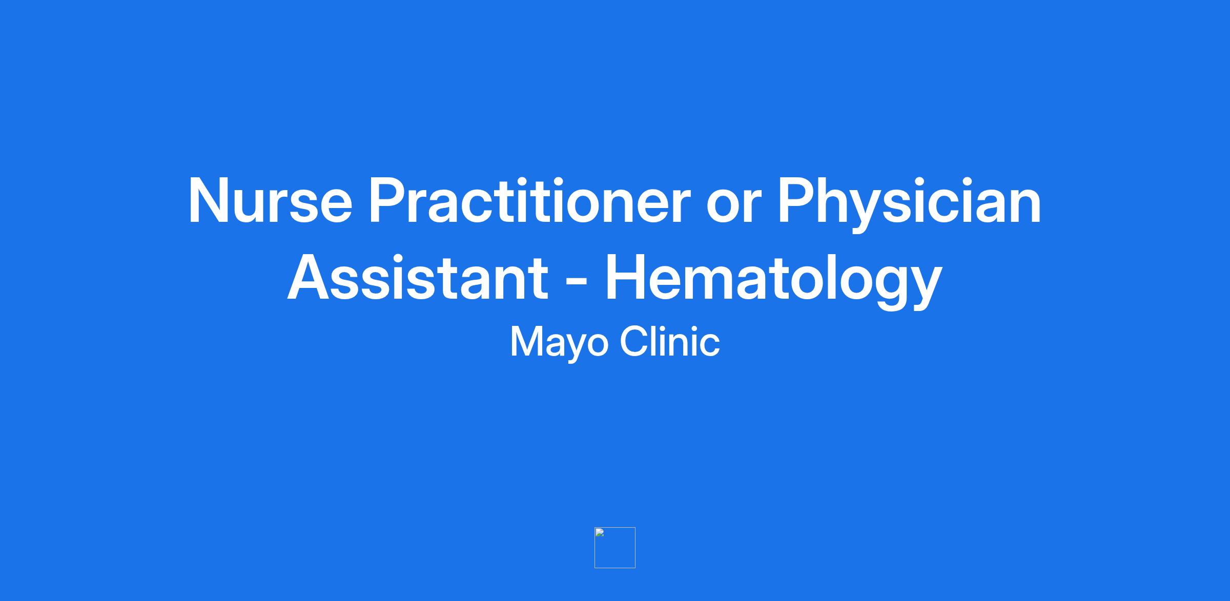 Mayo Clinic Arizona is seeking a **compassionate and skilled Nurse Practitioner (NP) or Physician Assistant (PA)** to join our **collaborative Hematology team** , consisting of **5–7 physicians and 2 Advanced Practice Providers** . This full-time position focuses on the care of patients with **Chronic Lymphocytic Leukemia (CLL) and Lymphoma** , within a **multidisciplinary, patient-centered environment** that emphasizes innovation, teamwork, and clinical excellence.