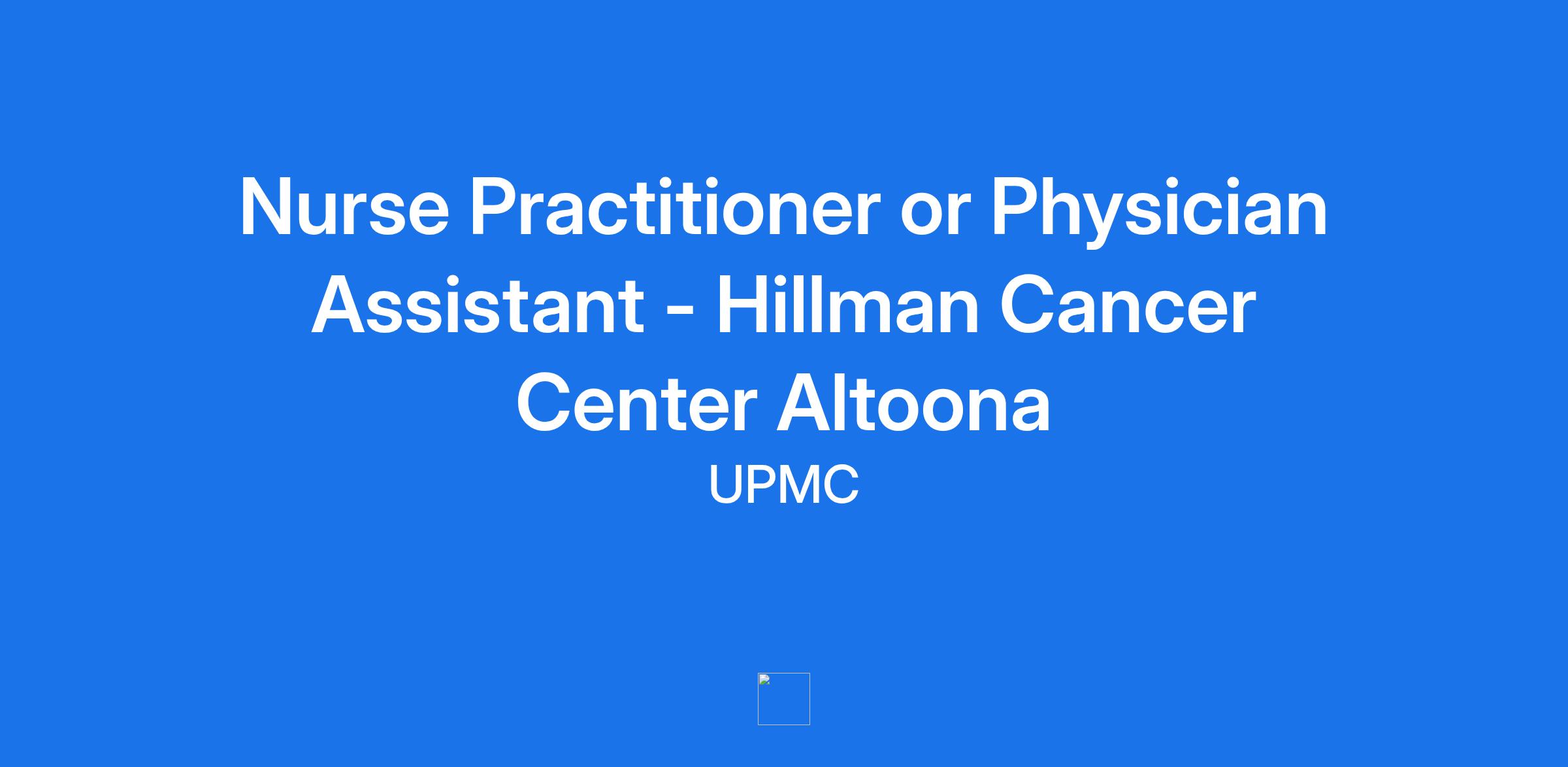 Nurse Practitioner or Physician Assistant - Hillman Cancer Center Altoona