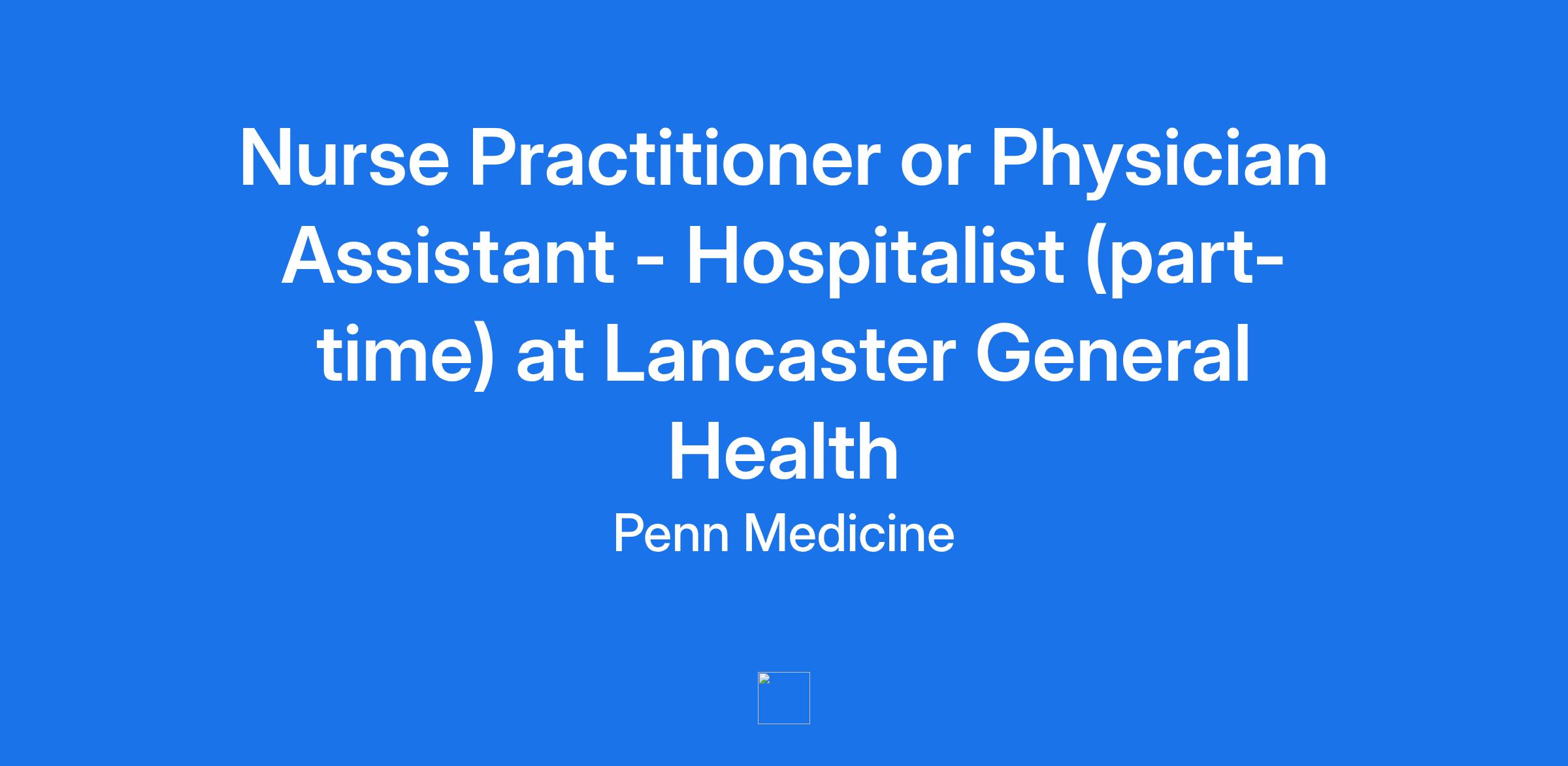Nurse Practitioner or Physician Assistant - Hospitalist (part-time) at Lancaster General Health