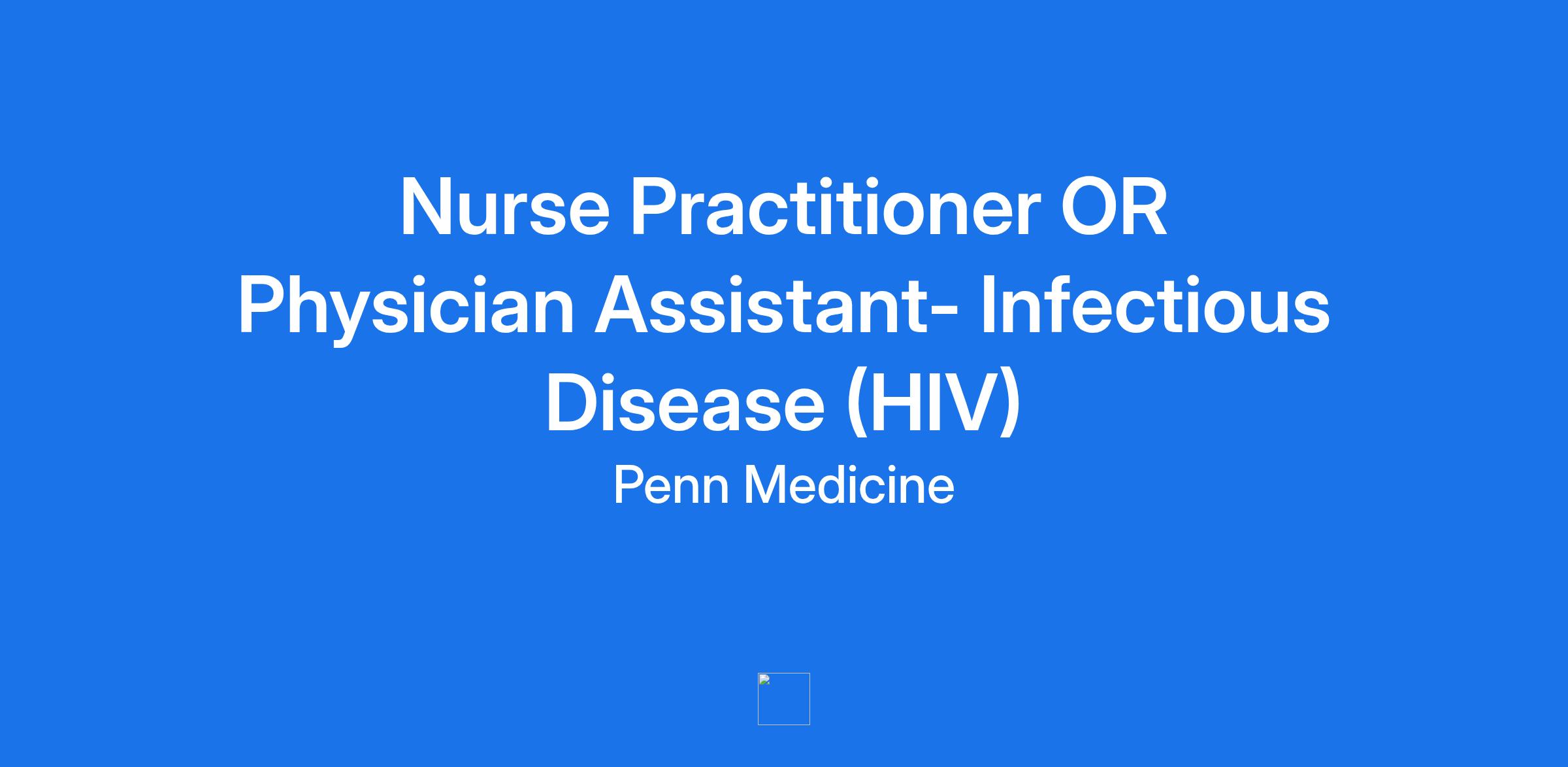 Nurse Practitioner OR Physician Assistant- Infectious Disease (HIV)