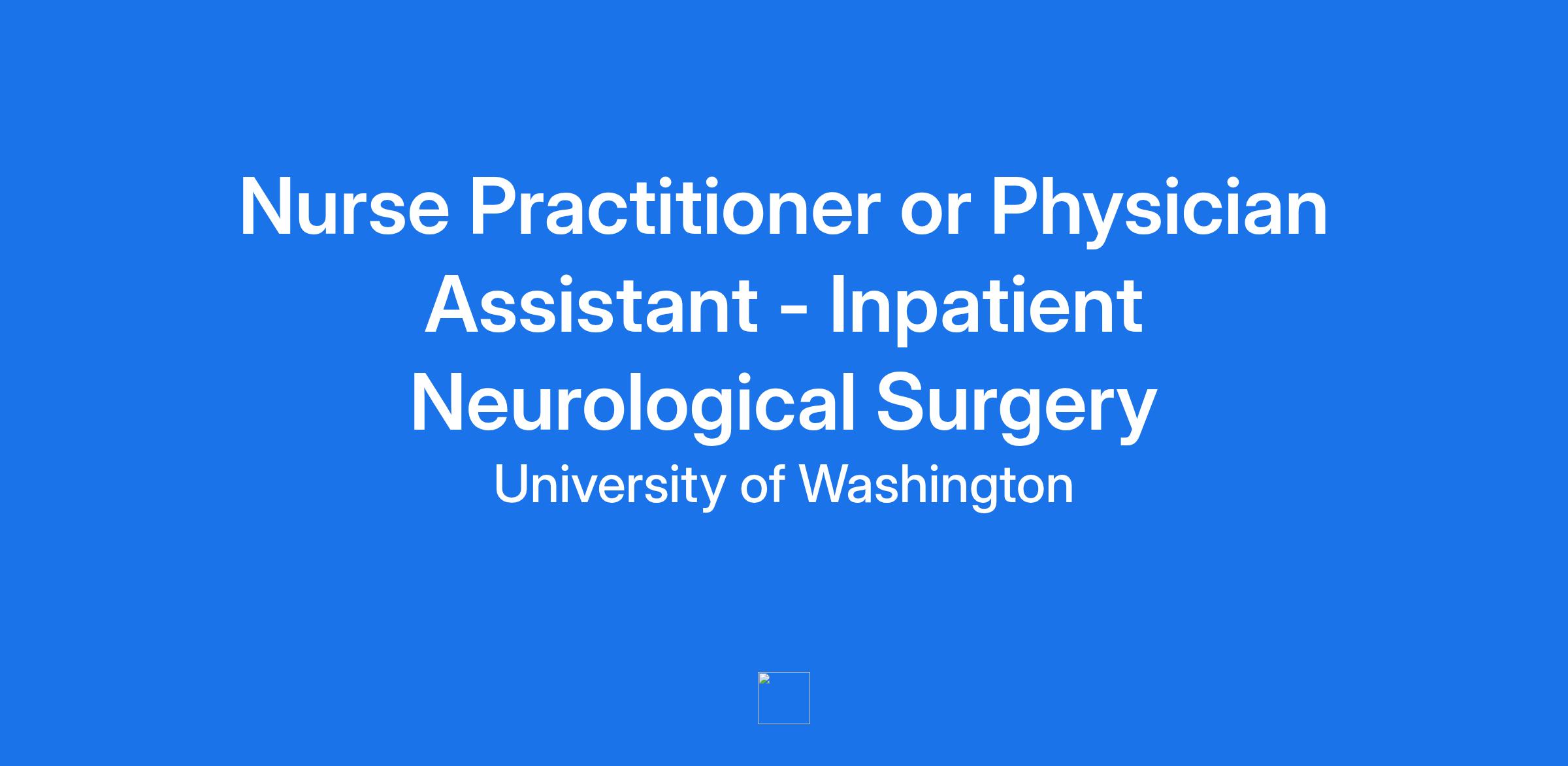 **UW Medical Center-Montlake - Neurological Surgery Clinic** has an outstanding opportunity for an **Inpatient** **Adv** **anced Practice Provider (Nurse Practitioner or Physician Assistant)** .