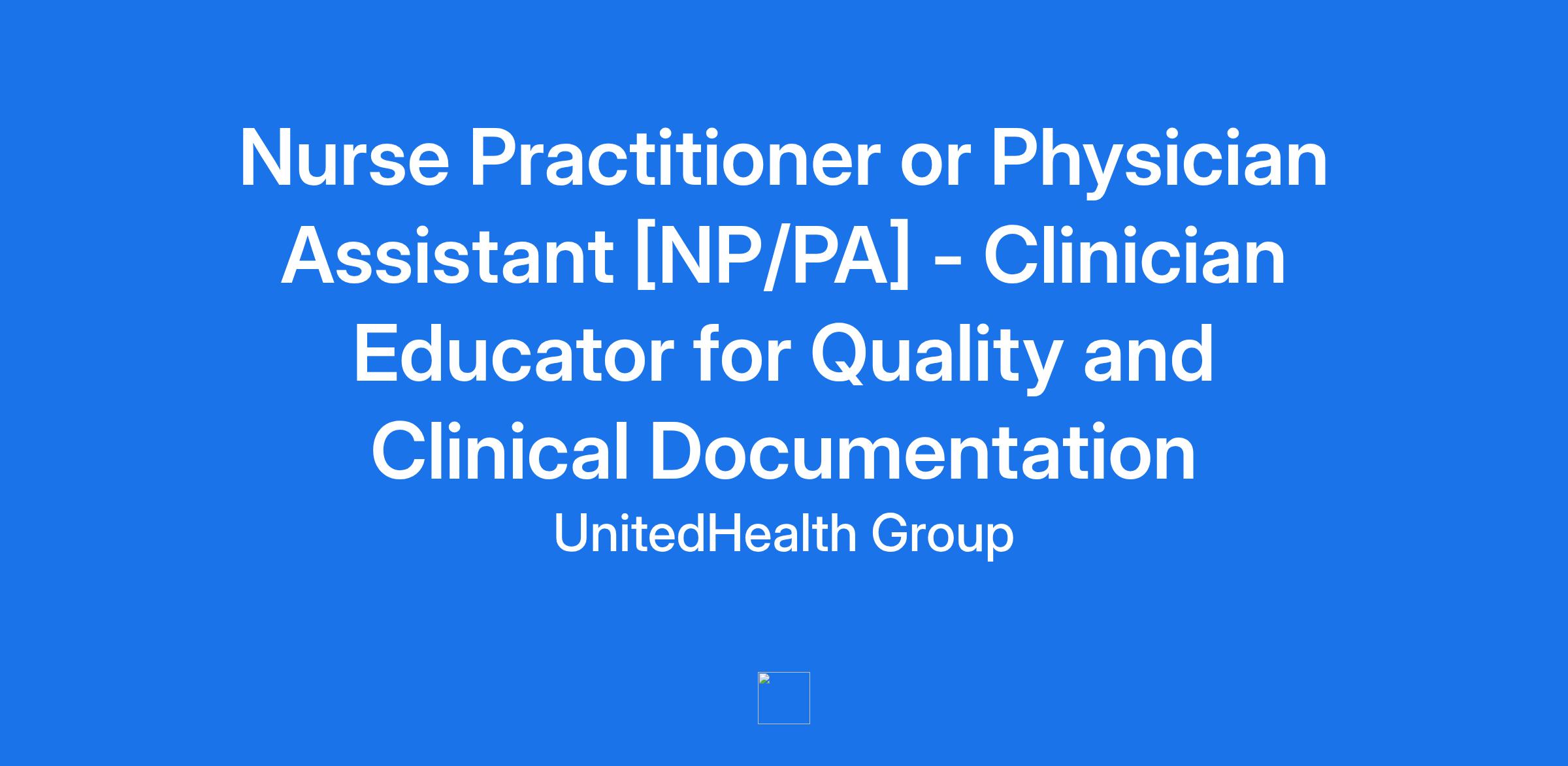 Nurse Practitioner or Physician Assistant [NP/PA] - Clinician Educator for Quality and Clinical Documentation