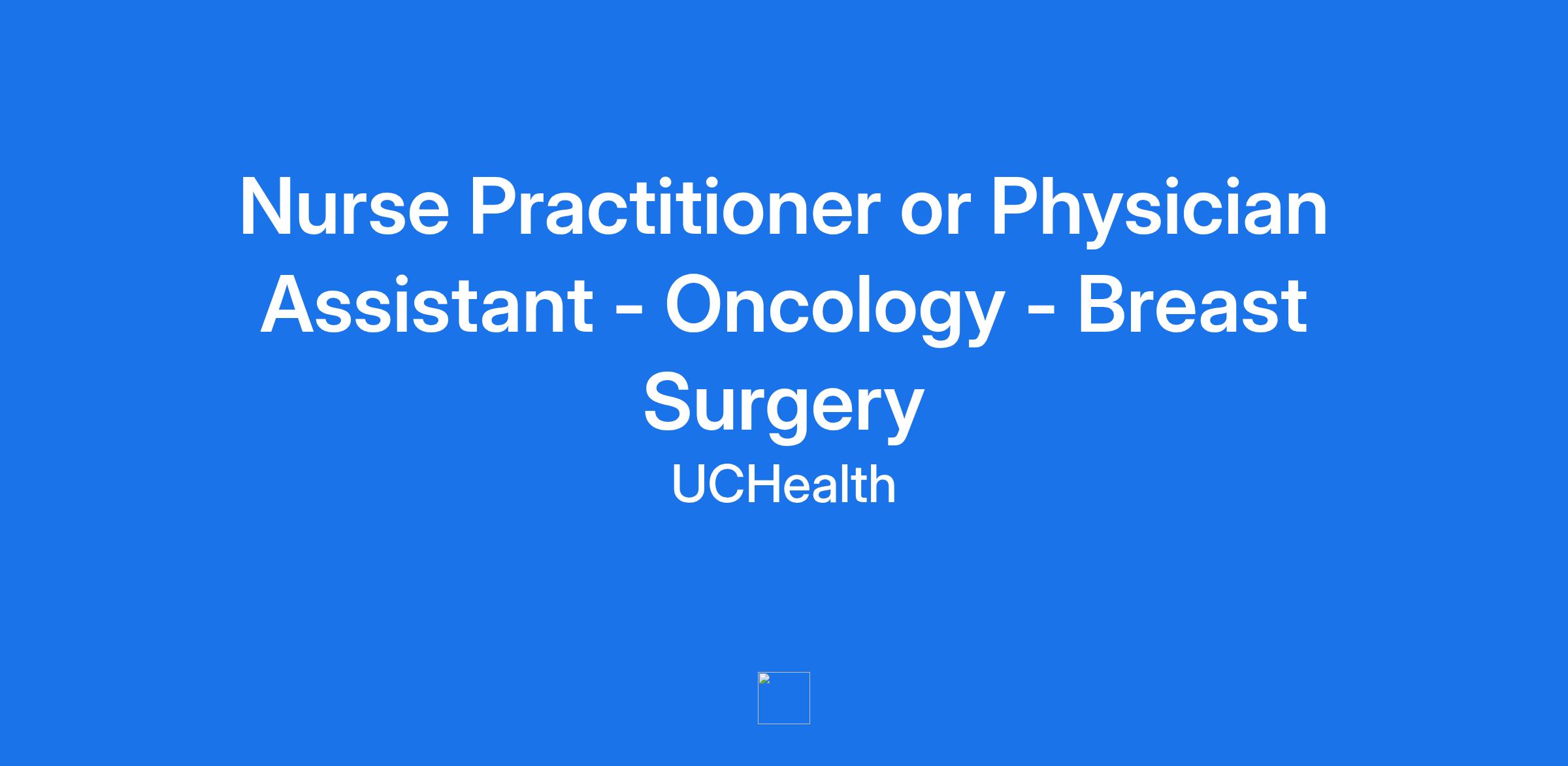 Nurse Practitioner or Physician Assistant - Oncology - Breast Surgery