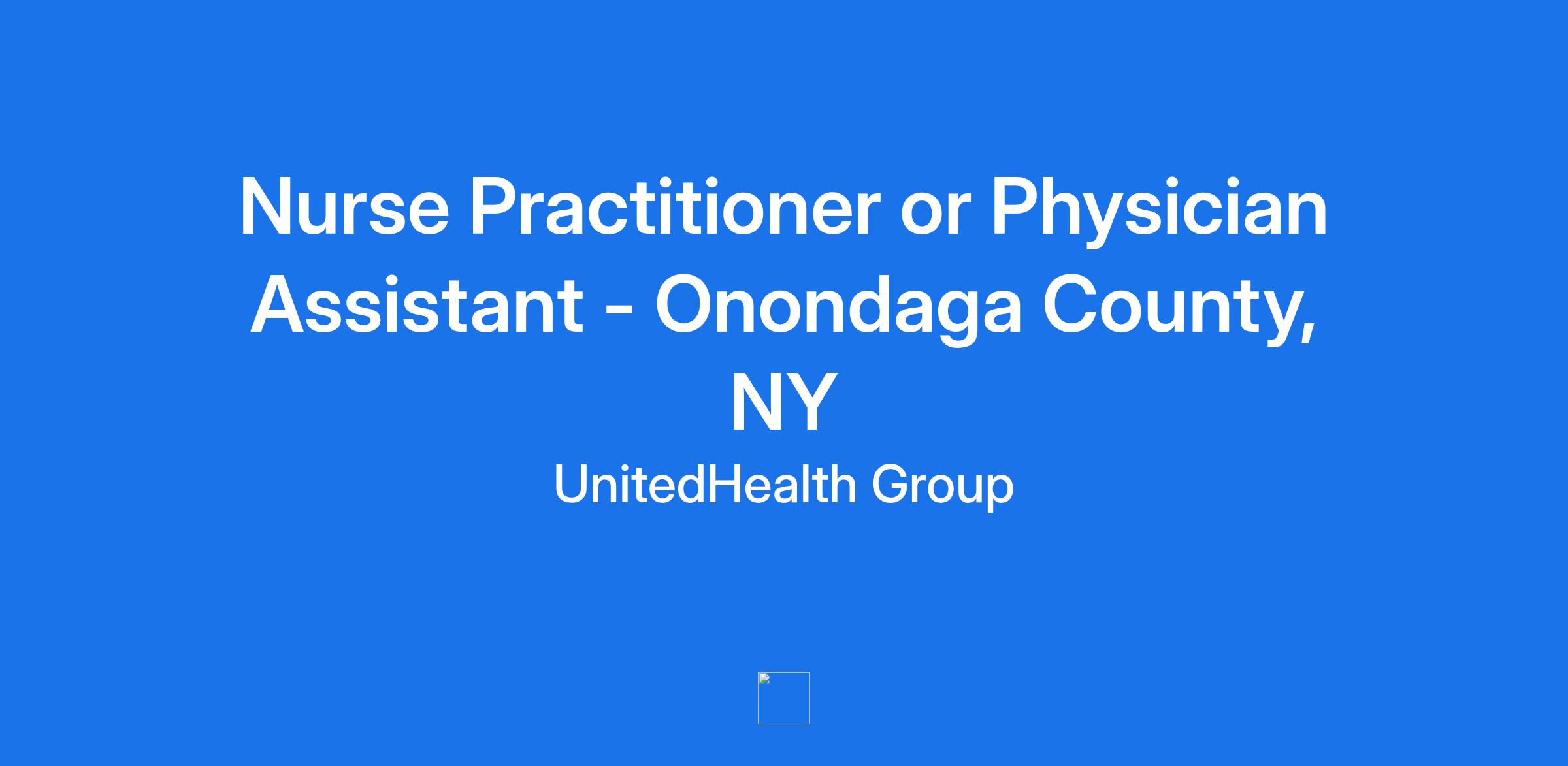 **Optum is seeking a Nurse Practitioner or Physician Assistant to join our Home-based Medical Care team in Onondaga County, NY. Optum is a clinician-led care organization, that is creating a seamless health journey for patients across the care continuum.**