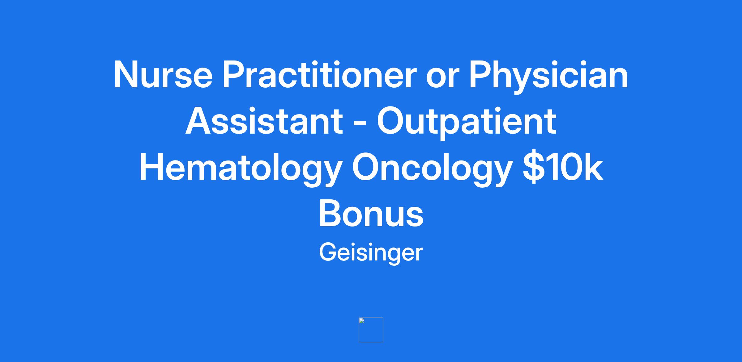 Nurse Practitioner or Physician Assistant - Outpatient Hematology Oncology $10k Bonus