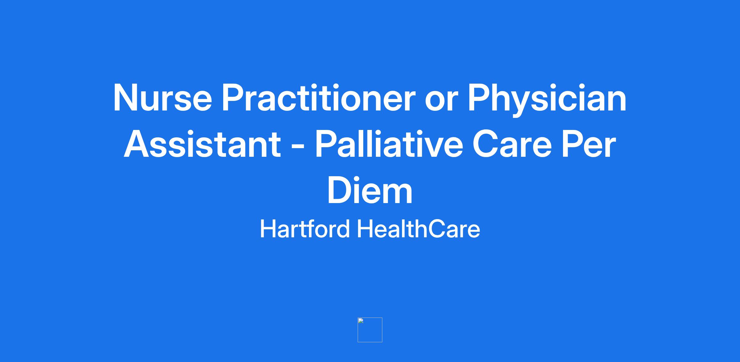 *Position Details:* The Hospital of Central Connecticut is seeking a Nurse Practitioner or Physician Assistant to join their Palliative Care team! The Advanced Practitioner (APP) will work in collaboration with the attending physician and members of the interdisciplinary care team to deliver expert palliative care services to patients and their families living with chronic serious or acute life threatening illness, or those nearing end of life. The APP is an expert in pain and symptom management, seeking to optimize patient function and quality of life within the limits of the disease process, while considering factors such as fear, communication barriers, economic issues and cultural traditions. *Role*: Physician Assistant or Nurse Practitioner *Location*: 100 Grand Street, New Britain, CT *Setting*: Inpatient, Palliative Care *Schedule:* Per Diem *Hartford HealthCare supports Nurse Practitioners and Physician Assistants in practice:* · Dedicated support and voice for our Nurse Practitioners and Physician Assistants through the *Office of Advanced Practice* directed by Sarah Clark, MBA, MHS, PA-C, BSN, RN, System Director of Advanced Practice · Hartford HealthCare is one of the largest, *non-profit*, fully-integrated healthcare systems providing patient care in the state, allowing our providers to care for their patients no matter where they reside in Connecticut · With tools like *EPIC*, Hartford HealthCare’s state of the art clinical and informatics technology promotes improved patient outcomes, streamlined continuity of care and superior provider satisfaction *About Hartford HealthCare:* · Honored as a “*Best Organizations for Leadership Development*” by the National Center for Healthcare Leadership (NCHL) · Prestigiously named one of the “*Best Hospitals to Work for in Connecticut*” by the Becker's Hospital Review · Committed to *continuous development* through The Center for Education Stimulation & Innovation (CESI), our Provider Leadership Development Institute and a robust on demand learning platform including CME, special courses, learning series and tools and resources · Established *Mentorship and Orientation* programs specially designed for newly hired providers and providers new to practice *Physician Assistants/Nurse Practitioners Role Scope:* Under established guidelines and in collaboration and/or supervision with the practice physician(s), Physician Assistants/Nurse Practitioners perform routine physical examinations, and formulate medical, educational, and psychosocial plans to treat patients. In consultation with the physician(s) and care team members, Physician Assistants/Nurse Practitioners develop plans for further evaluation of health needs, e.g., referral to other health team members or specialists. Physician Assistants/Nurse Practitioners provide appropriate treatment for problems within the scope of the provider’s practice as designated by protocols and identifies problems outside of their scope of practice and refers appropriately to physician. *Requirements:* · *Licensure*: Unrestricted State of Connecticut Medical License (or eligible) · *Training*: Physician Assistant or Nurse Practitioner · *Preferred Experience*: 1 years’ experience preferred o National Board Certification in Palliative Care Interested candidates please contact Victor Rodriguez, Advanced Practice Recruiter, at Victor.Rodriguez2@hhchealth.org. **Job:** **Other Specialties* **Organization:** **New Britain General* **Title:** *Nurse Practitioner or Physician Assistant - Palliative Care Per Diem* **Location:** *Connecticut-New Britain-100 Grand Street New Britain (10126)* **Requisition ID:** *25165257*