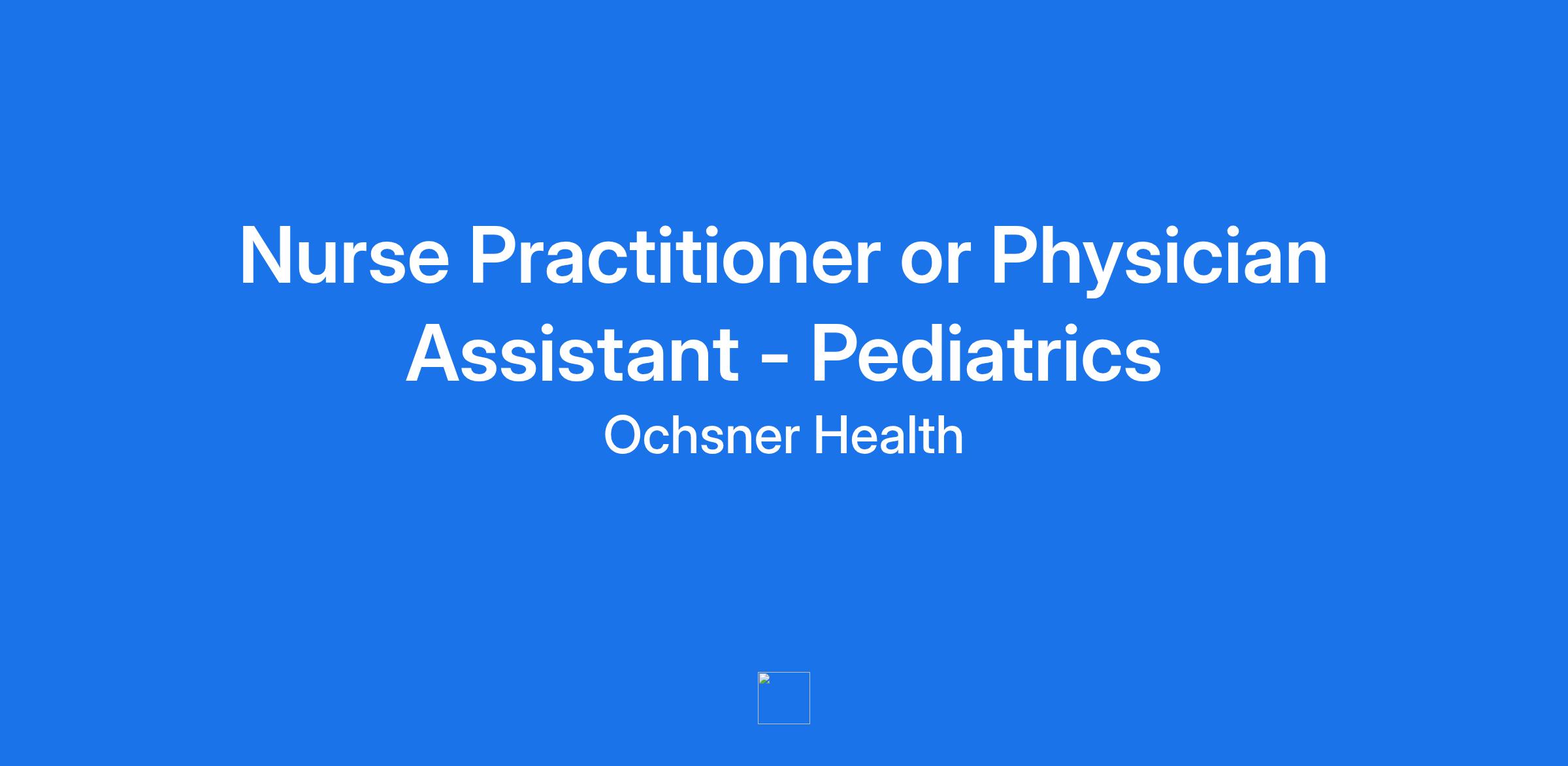 Nurse Practitioner or Physician Assistant - Pediatrics