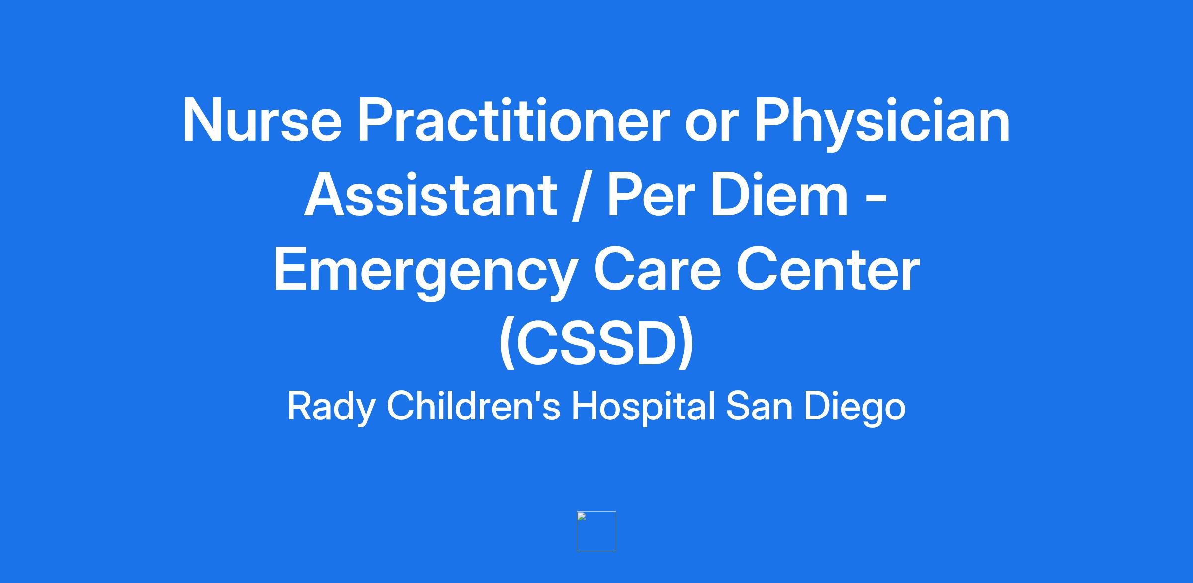 _Children’s Specialists of San Diego (CSSD) is committed to academic excellence and diversity within the faculty, staff, advanced practice providers, and student body. We are seeking both nurse practitioners and physician assistants to join the Division of Emergency Medicine._