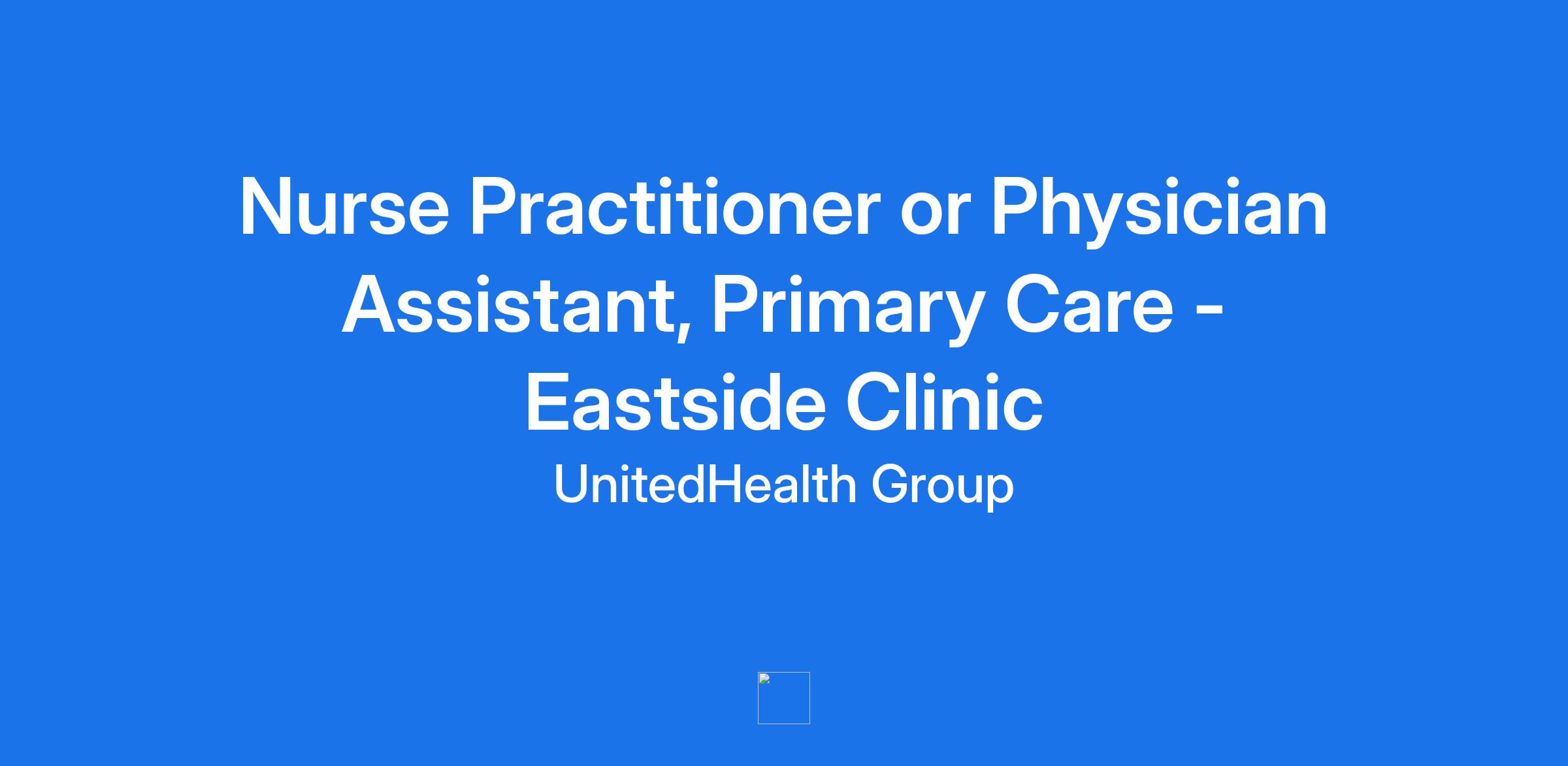Nurse Practitioner or Physician Assistant, Primary Care - Eastside Clinic