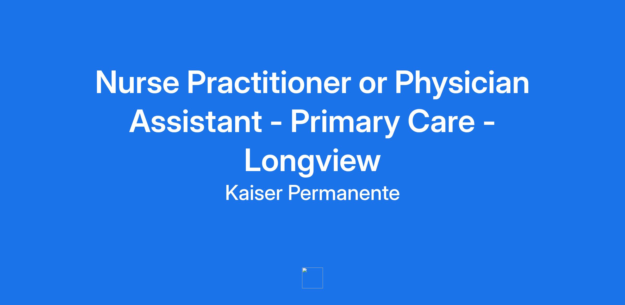 TITLE: Nurse Practitioner or Physician Assistant - Primary Care - Longview