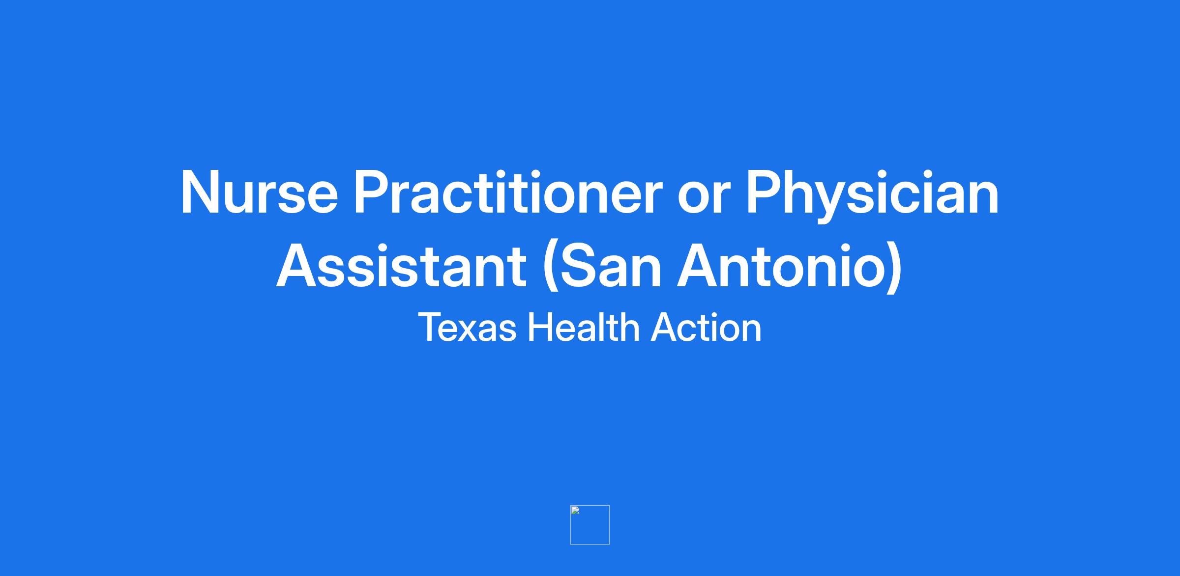Texas Health Action is seeking a Nurse Practitioner or Physician Assistant (Bilingual - Spanish & English preferred) at our San Antonio Kind Clinic to evaluate, plan, and provide care for patients in consultation with and under direct supervision of the attending Physician. This is a full-time, exempt position requiring 40 hours a week with some night and weekend hours.