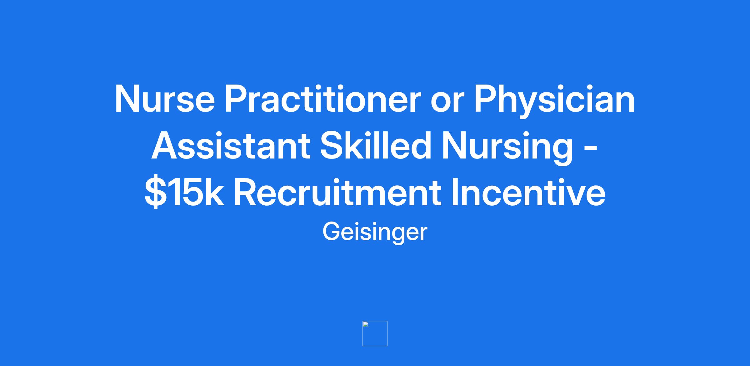 Nurse Practitioner or Physician Assistant Skilled Nursing - $15k Recruitment Incentive