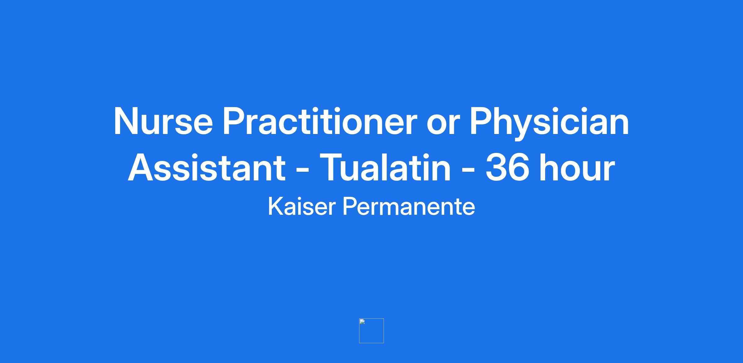 TITLE: Nurse Practitioner or Physician Assistant - Tualatin - 36 hour