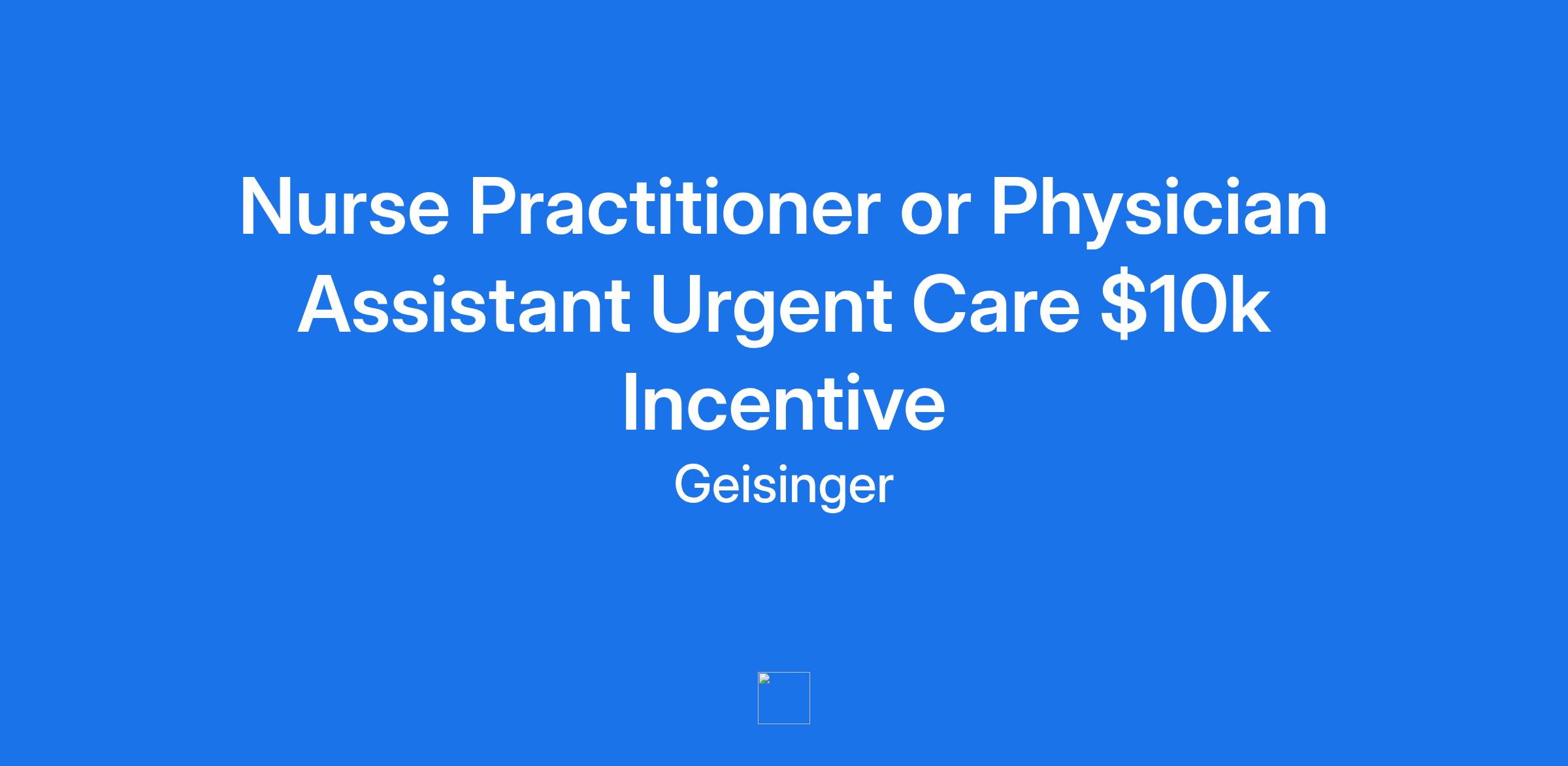 Nurse Practitioner or Physician Assistant Urgent Care $10k Incentive