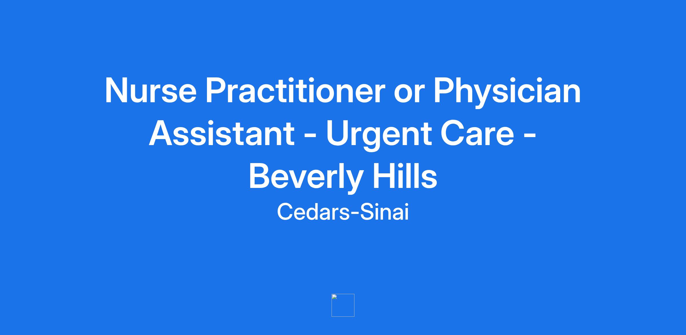 **Working Title** : Nurse Practitioner or Physician Assistant - Urgent Care - Beverly Hills