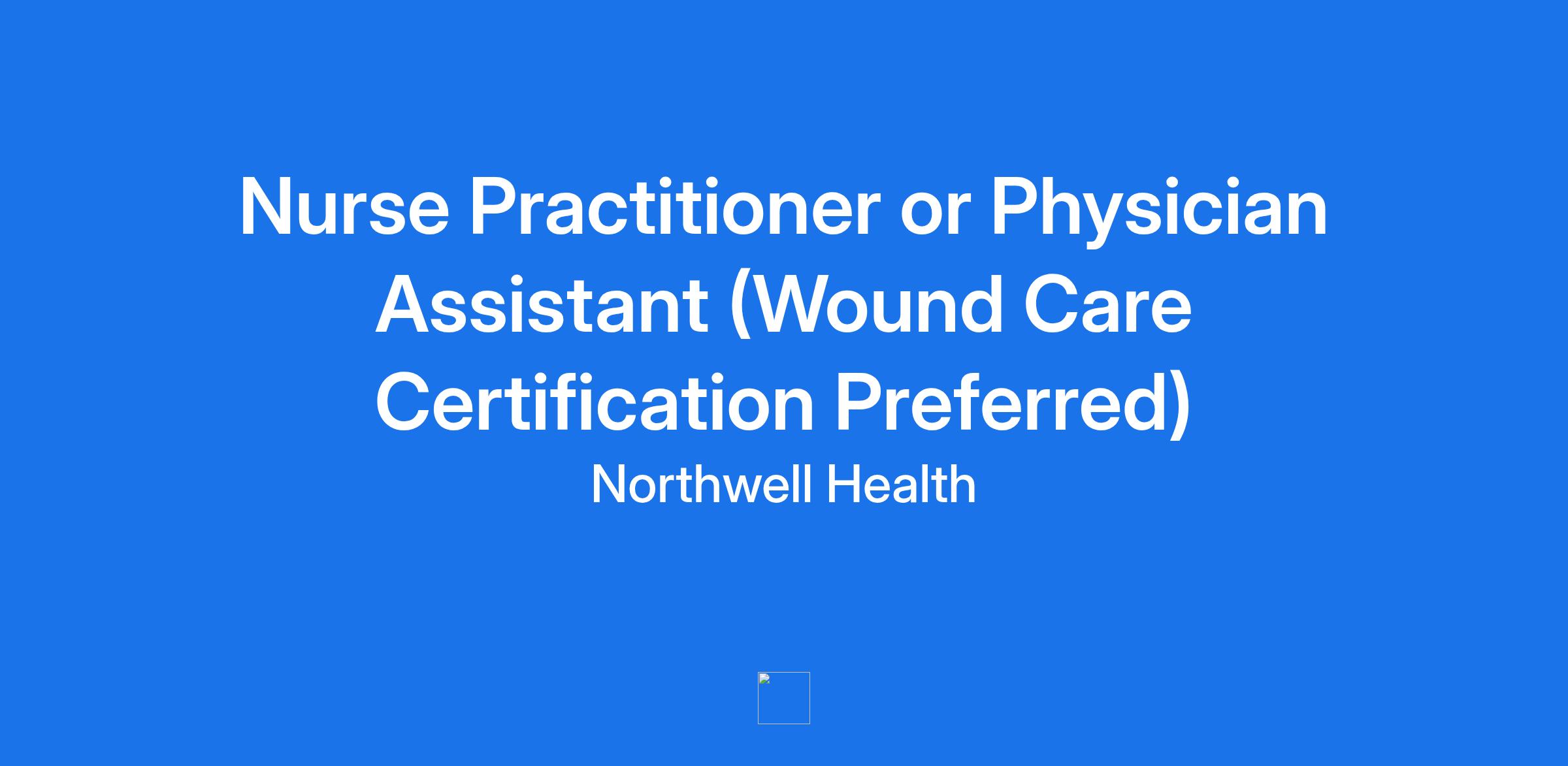 Nurse Practitioner or Physician Assistant (Wound Care Certification Preferred)