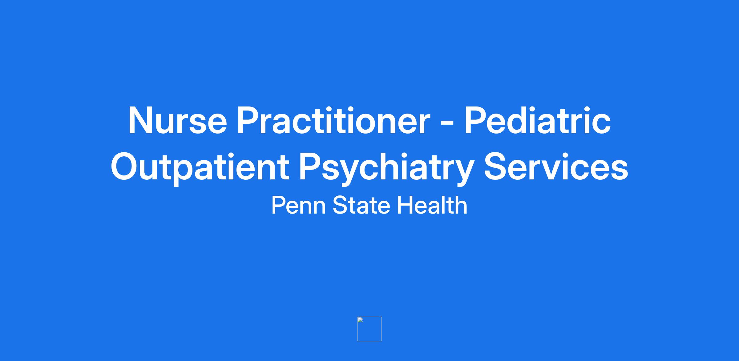 Penn State Health Milton S. Hershey Medical Center's pediatric service line is looking for a nurse practitioner to provide outpatient services for individuals from 8- 18 years of age at Lancaster Pediatric Center. The program is currently looking to recruit a Psychiatric Mental Health Nurse Practitioner (PMH-CRNP) for an open full-time position. Our ideal candidate will be Pennsylvania licensed and have 2-3 years of experience providing pediatric psychiatric care.