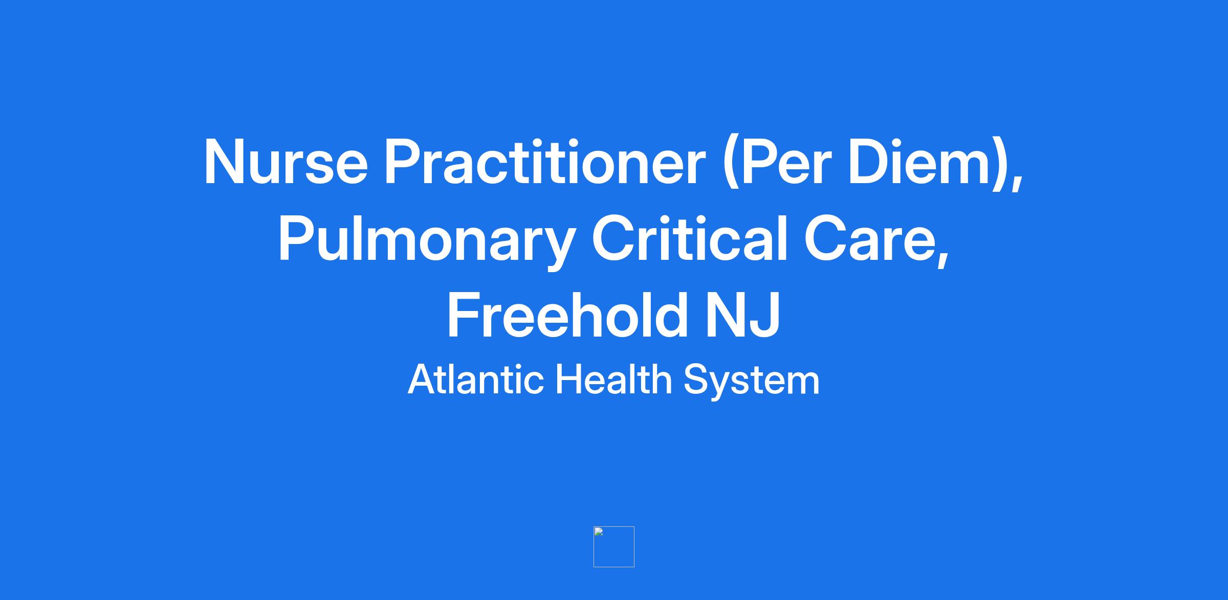 Atlantic Health is Seeking a Per Diem Nurse Practitioner for Pulmonary Critical Care in Freehold, NJ