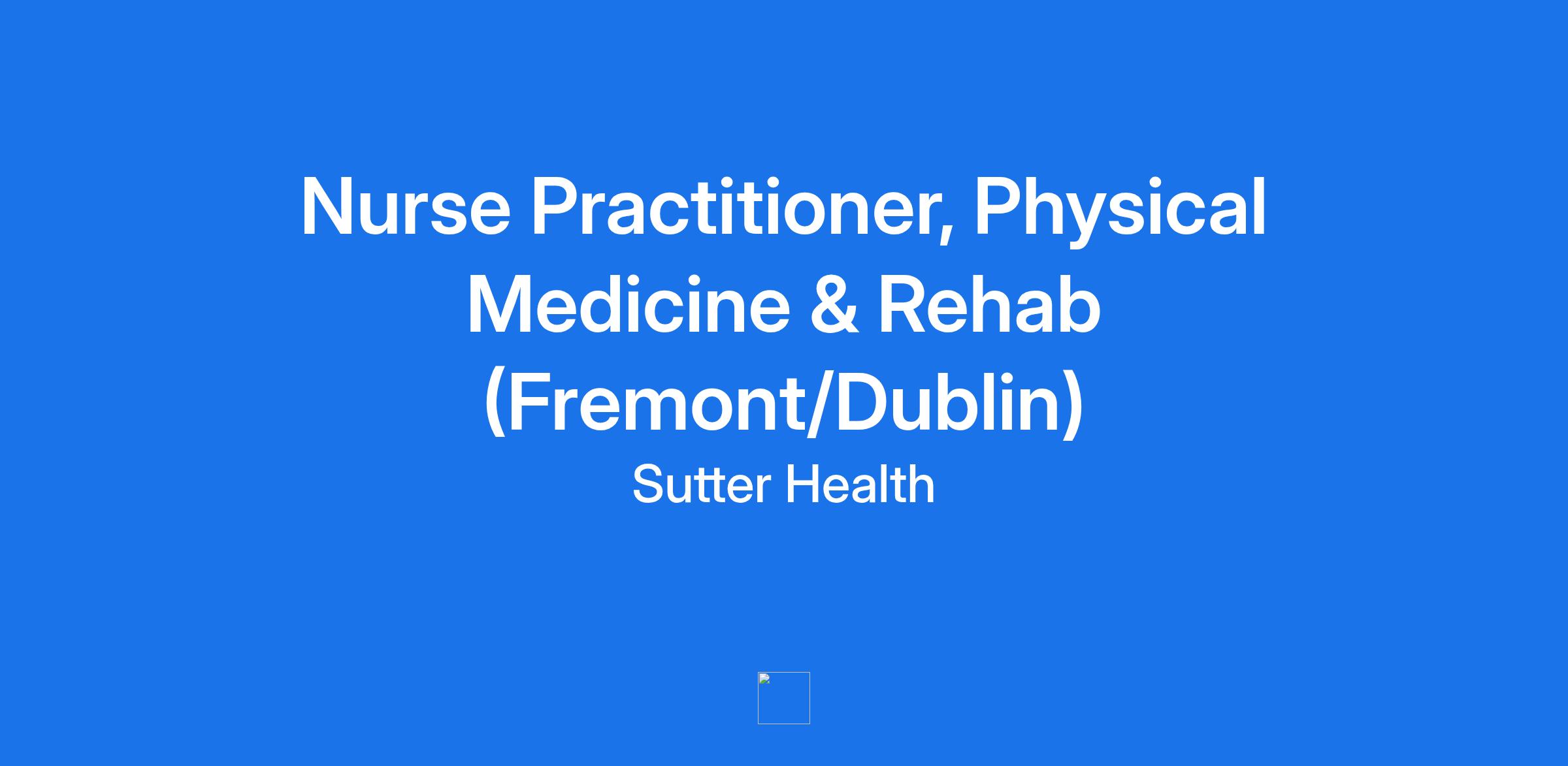 Nurse Practitioner, Physical Medicine & Rehab (Fremont/Dublin)