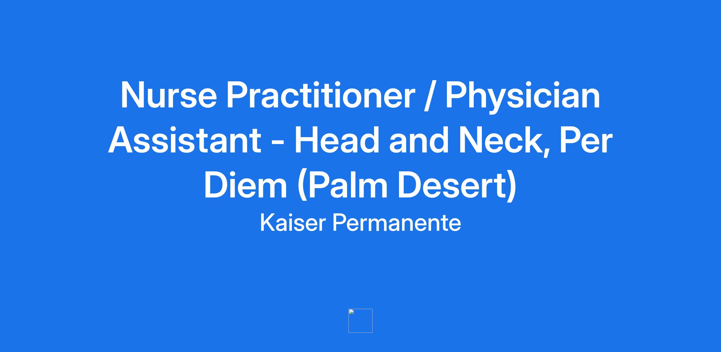 TITLE: Nurse Practitioner / Physician Assistant - Head and Neck, Per Diem (Palm Desert)