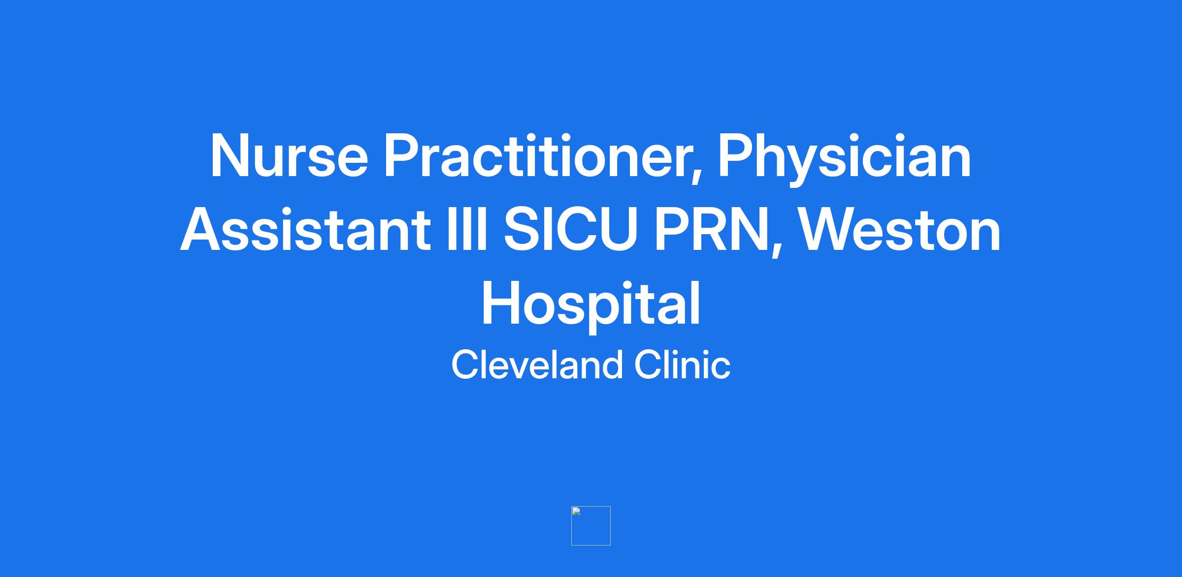 Nurse Practitioner, Physician Assistant III SICU PRN, Weston Hospital