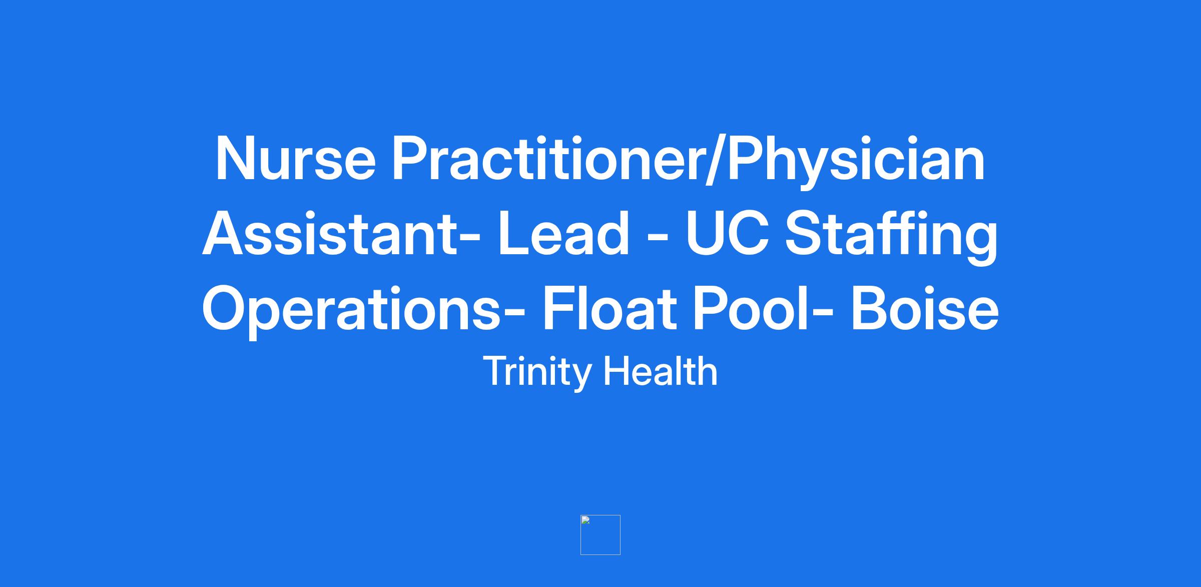Nurse Practitioner/Physician Assistant- Lead - UC Staffing Operations- Float Pool- Boise